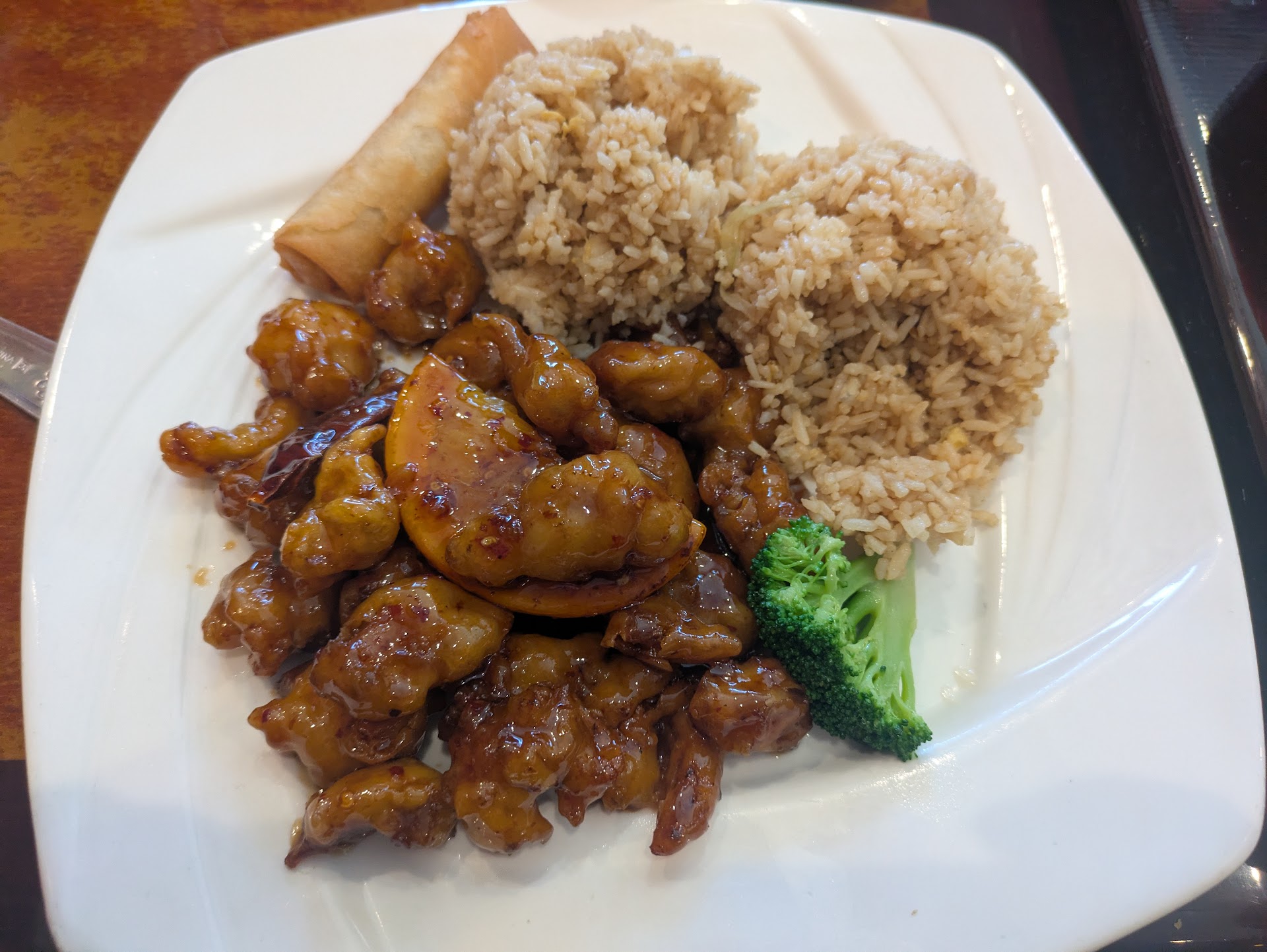 Wasn't expecting to be served. Was expecting to pick up at window. So very pleasantly surprised. Food was hot and delicious. Servings were generous. Everyone took something home. Quiet to have conversastions. The egg rolls were a treat - nice and hot from the kitchen - perfect appetizers. Usually have to heat up once I get home. So a treat to eat hot out of the fryer!