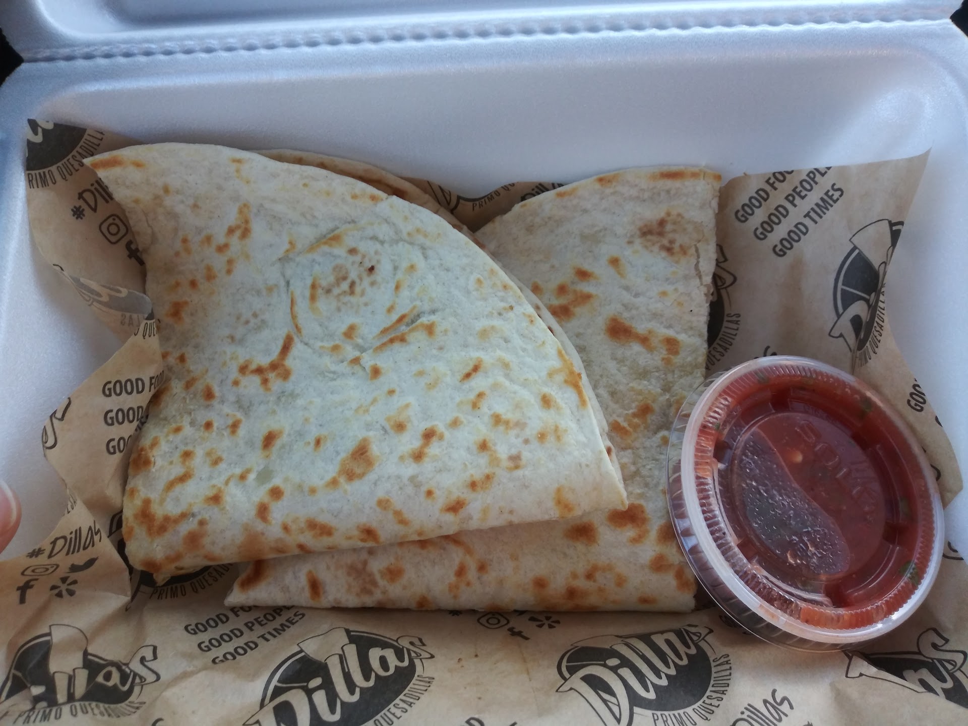 First time here and I gotta say, theres a lot of menu options to choose from, to make the perfect quesadilla. I was able to snatch a free Dilla by entering my info on their fb page. I chose the steak and cheese. It was nice and hot, the steak was juicy and not at all tough. The cheese was gooey and stringy, and it came with a little salsa cup. The salsa had a nice mild heat to it, with lots of cilantro and tomato flavor. Normally this would be 7.49 plus tax. A little more than lets say, taco bell. But definitely tasted tons better ! I...