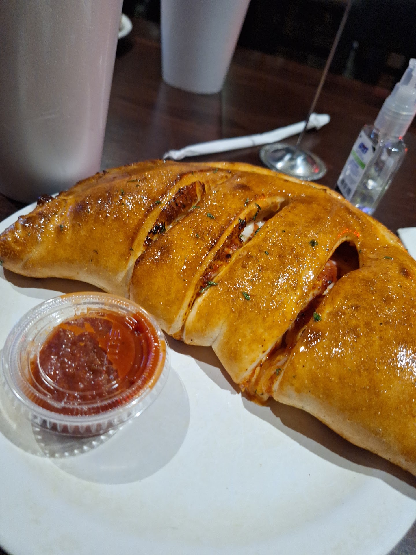 Will fill in details later but the pizza is good. Their overall score is well deserved... Ok returning to update with supporting details as to why I gave this place 5 Stars. Tiny place but dine in is available. Yes, the food is good, but there were service issues. Number one, the place was a mad house, which is a good thing. Means they're doing something right if you have a line to the door. Now it's an even better thing when you have staff members that although under pressure, still conduct themselves in a professional manner. The young man that was taking orders at the front. I would say it was anywhere from age 18 to 20 somewhere around there. He did seem a little overwhelmed, but he kept his composure. He didn't seem annoyed irritated or bothered. There was another young lady there of what appeared to be Southern Asian descent. Which this place (I would assume because you can see the kitchen staff is of Southern Asian descent) must be owned by someone of Southern Asian descent. I was suprised by this as it was my first time seeing a pizza place ran by this ethnic group, but they know what they're doing. It was good! Anyway apparently there was an order mixup or something that required clarification. She came from the back and approached the young man and they talked it out with no issue. He then turned to me and with me being a new customer, I had many questions. That alone can be quite annoying to some restaurant workers especially when there is a line. He patiently answered and put in my order. Now in the midst of waiting on my order(I chose to eat in so i was at a table seated) I got an important phone call and it required me drive somewhere... about 10 minutes away. I went up to the front and asked how long the wait would be and told the young man I needed to make a run and would be back. He said it was fine. Maybe I shouldn't have left my order number on the table then because when I returned my friends small pizza was on the table already. So that was a bit bothersome that they didn't hold the order back until I returned. When i got to the table grumbling about it sitting, the customer sitting nearby assured me it had barely been sitting 5 min and no one had approached it at all. So that was good. I went up to check on my food and was told 2 more minutes. Well it arrived but was undercooked. I got the calzone and the middle was not done all the way. You could visibly see the cheese as not all melted and you could see part of the dough was raw. I returned to the front and requested a refund because I had somewhere to be. I had no time to let them remake it and have time to eat it. This was supposed to be an eat and run kind of stop. She was professional and there was no issue, she just said to give her a minute. She came over and showed me that my purchase amount had been adjusted and apologized. As I'm preparing to leave I remembered I had ordered a dessert that was never brought out. I approached again and asked about that assuming it was forgotten and she said no it would be out in another 2-3 minutes. I asked her to make it go then and she did. Now on to the food. My friend that was with me shared a slice of their 10 inch pizza. It was good. The dessert I got is what they call their "messy marshmallow bread" It's simply a smores pizza and whoever made it forgot the graham crackers but it was still decent. Now because I really wanted the calzone I literally returned the next afternoon and ordered it again since i had time for them to remake it this time if need be. This time it was cooked to perfection and was so good. One thing to note, this is not a true calzone. For those of us used to Italian owned restaurants, calzones typically have meat cheese and ricotta... no sauce in them... this doesn't have ricotta. That was a let down. So this is technically a Stromboli not a calzone. Anyway I definitely...