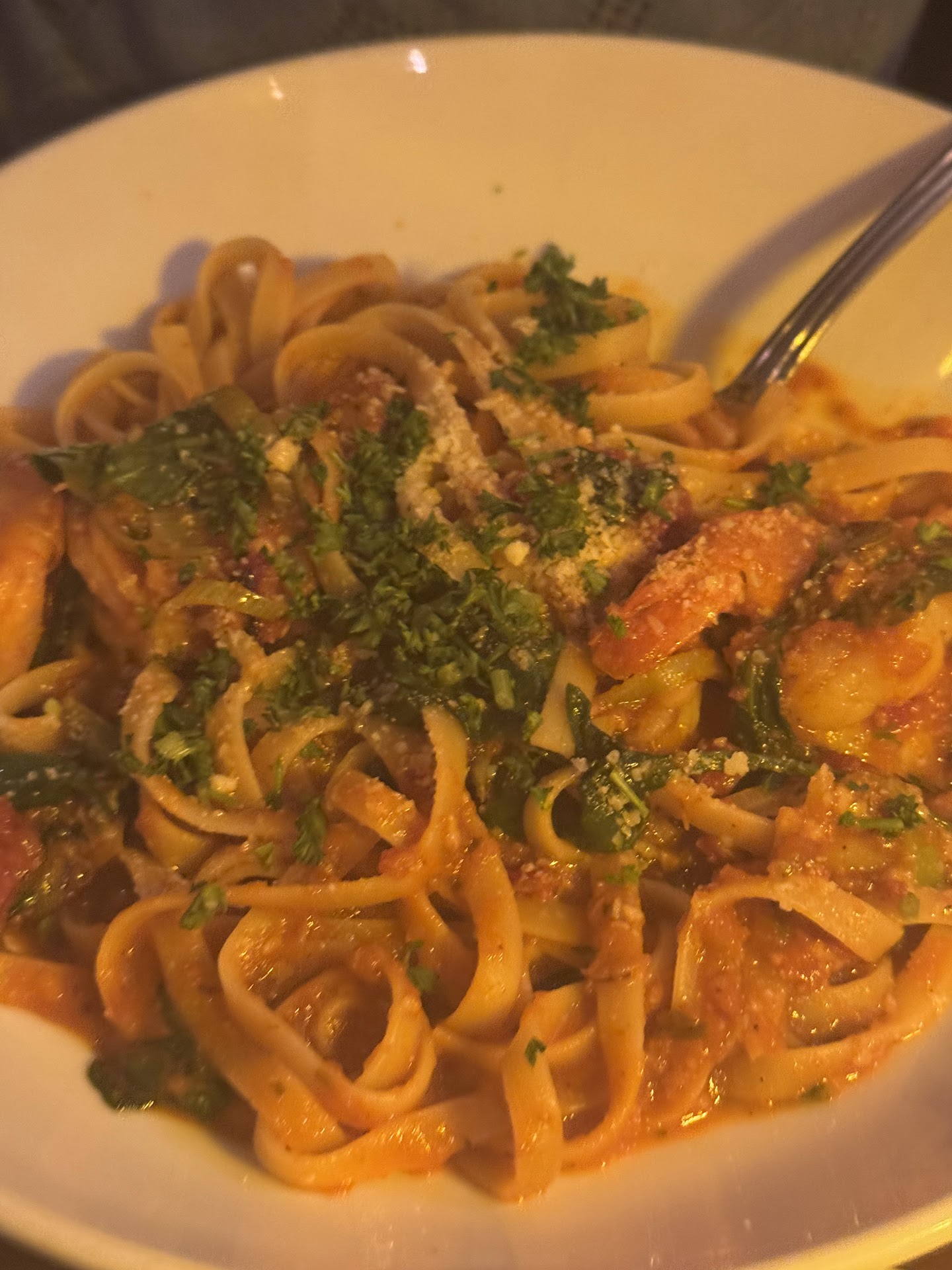 For a lunch dish, it was a great value. It had good flavor, but we both agree that it didn't have a great depth of flavor. My chicken alfredo (what I always order the first time so I have a standard to compare) could desperately need some black pepper or something.
