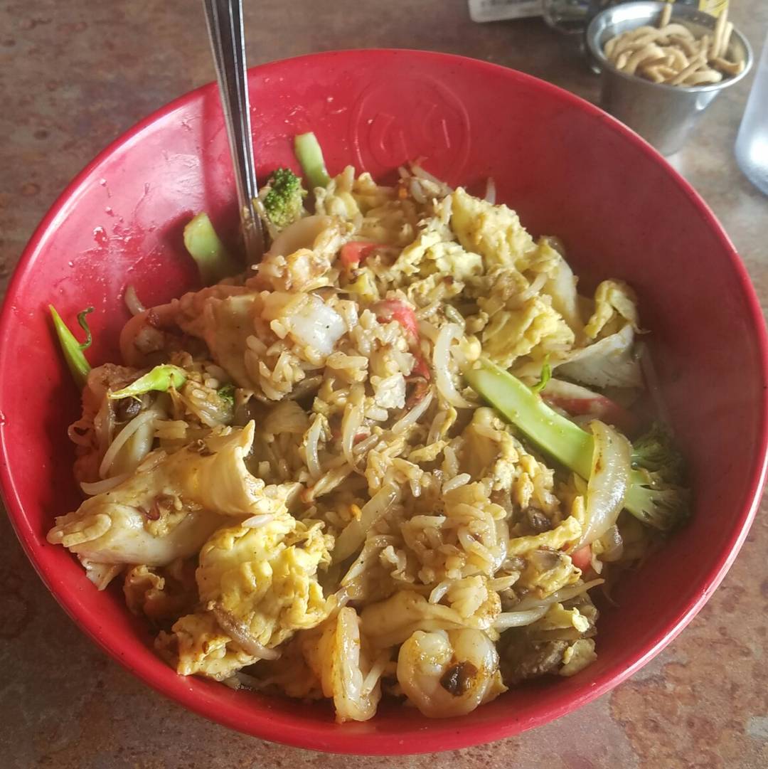 Ā Ā Ā Read moreOrder 1: Medium bowl: Shrimp & Chicken, broccoli, cabbage, pineapple, egg & udon noodles in Dragon sauce.