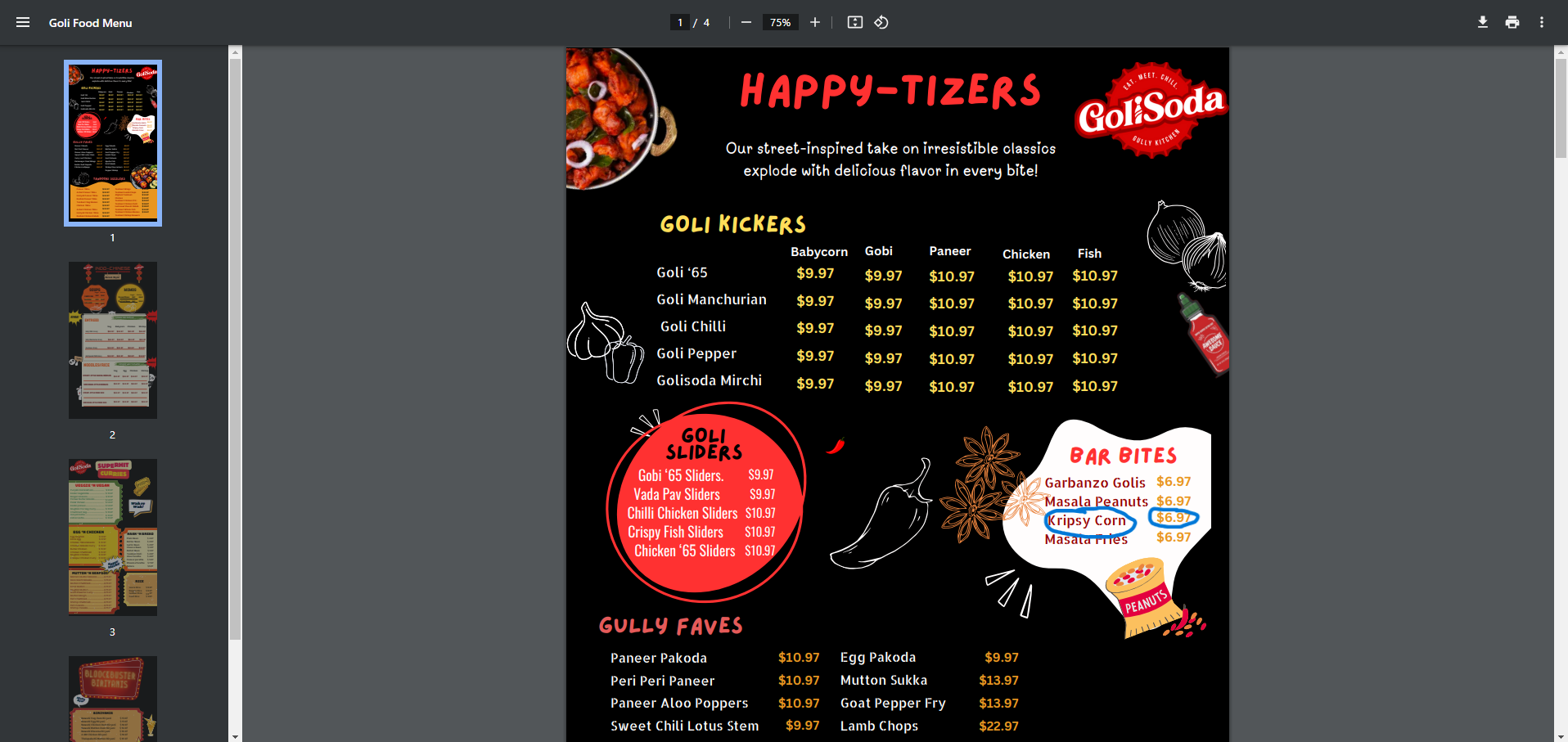 Dear Team GoliSoda, Thank you for your response. However, I would like to address a few points you mentioned.Firstly, my review was intended to provide constructive feedback based on my recent experience with a takeout order. While I appreciate that Chicken 65 is a popular dish and that you take pride in your food, my experience did not meet the expected standards.Specifically, the portion size of my takeout order was significantly smaller than what I have received when dining in. Additionally, the quality of the food was noticeably different; the chicken was dry and seemed not freshly prepared. It appears that takeout orders may not receive the same level of attention as dine-in orders, which could be an area for improvement.I understand that feedback is crucial for maintaining high standards, and I hope that both dine-in and takeout customer experiences are valued equally. It would be beneficial for your team to consider feedback from all customers, regardless of how they choose to enjoy your food.Furthermore, I believe it is important to value and respect all customer feedback, regardless of whether it is their first review or their hundredth. Every customer's opinion is valid and can provide valuable insights for improvement.Thank you for taking the time to read my feedback. I look forward to seeing improvements and hope to enjoy a better experience...