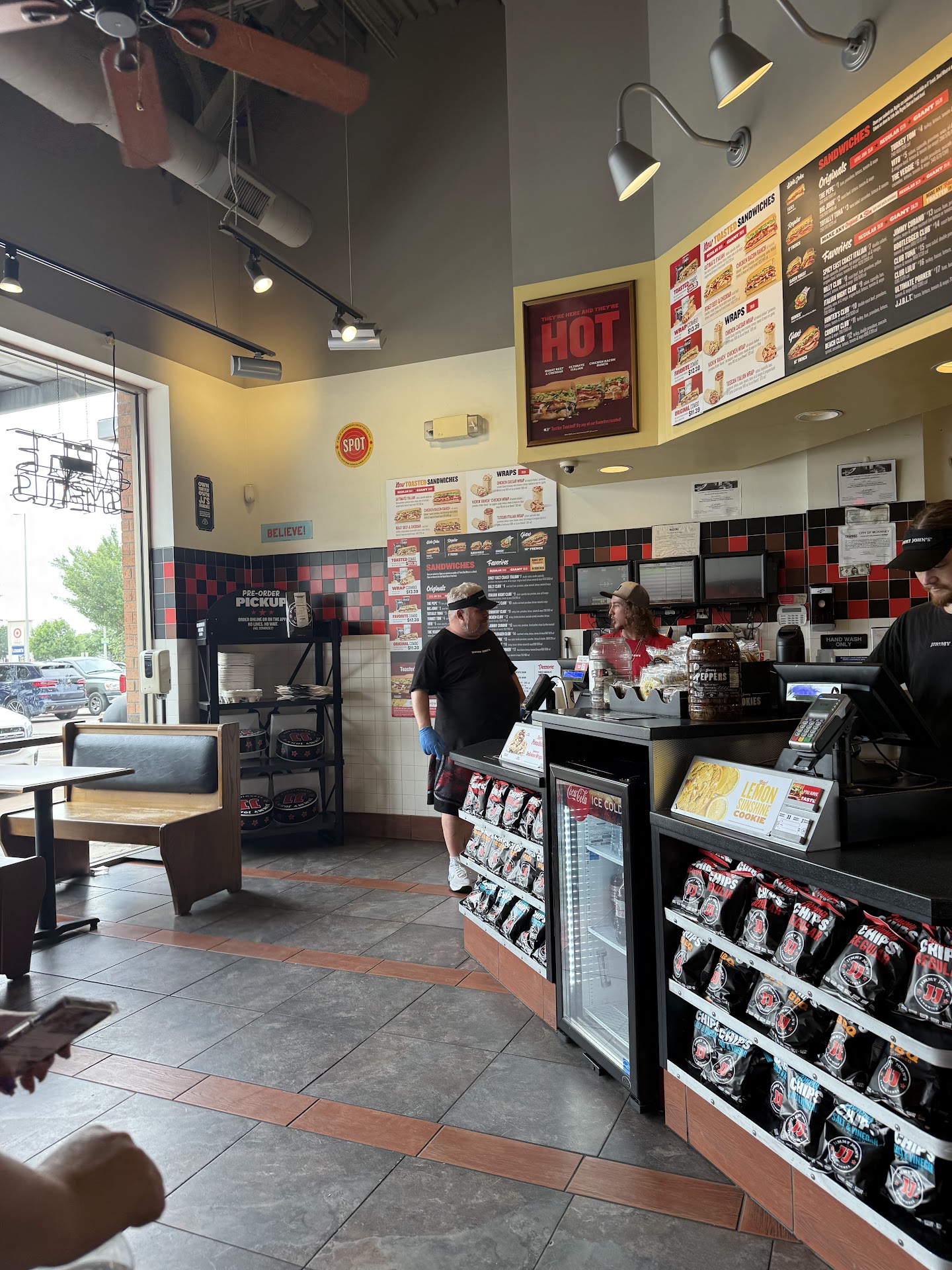 Read moreI don't post reviews very often, but I had to relate this experience. When I entered this Jimmy John's shop, there was 3 or 4 wadded up napkins and other trash just inside the door, there was a stack of cardboard storage boxes to the left near the front window, and there was a guy behind the counter laying on the floor working on some equipment. I stepped up to order and said I wanted the #2 Roast Beef. I asked what my bread choices were and couldn't understand the employee even after asking him to repeat twice. Then, someone else started making a regular sized sandwich, but I wanted a large. I was never asked. I was looking at what my options were for toppings - onions, tomatoes, cucumbers, peppers, etc. and before I could decide, the worker handed me my sandwich! I guess they don't make it the way I want it, they make it the way they want it. I thought Jimmy John's bragged about how the only deliver within 5 minutes of their stores so the sandwiches are hot. Well, I was in the store and got a cold sandwich. That sandwich had a minimal amount of meat on it, mayo, lettuce and tomato, and nothing else. It was the most flavorless meal I've had in years. Very...