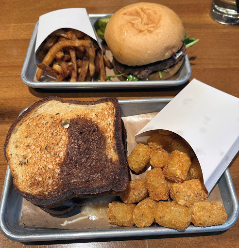 Tots and fries were good, but the tots were over-seasoned. I'll just be going for the fries next time.