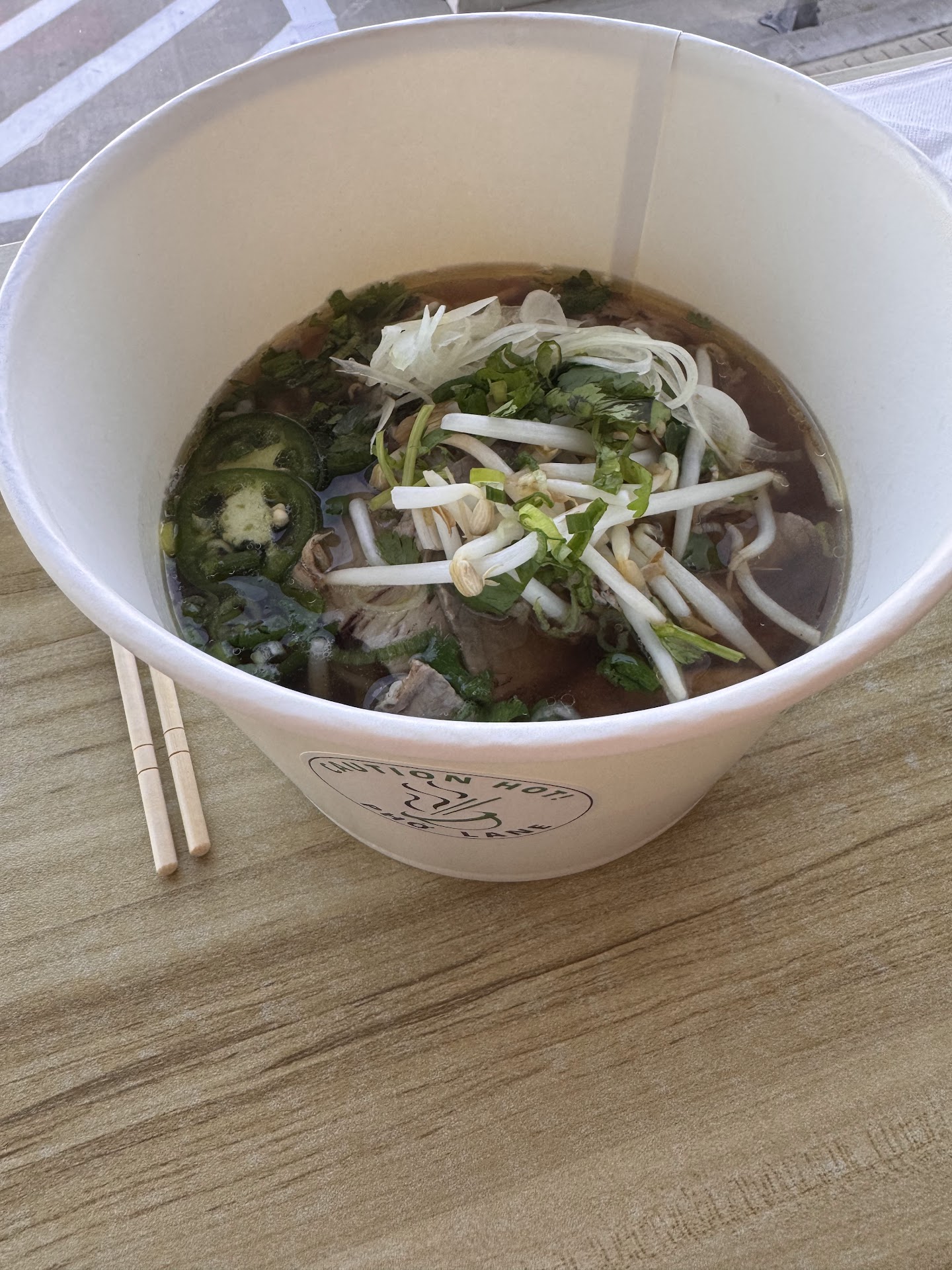 Pho Lane has a limited menu (which is a good thing), and they are mostly setup for to go orders, but they do have tables so you can eat there if you choose to, as we did.