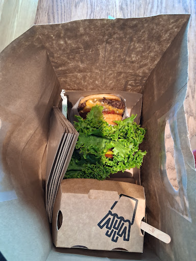 Read moreI tried this place out on a Saturday afternoon for a quick family lunch. First, the atmosphere was very crisp, bright and clean. The music was a bit loud as to make conversing a little difficult, but really that's the way most restaurants are now. Ordering was via a kiosk, and was easy enough to understand. However, if you have any questions about the menu or need assistance using the kiosk, it may be a bit difficult to flag down an employee to get assistance. We tried the cheeseburger, shakeburger, regular fries, lemonade, cherry hibisucs lemonade and chocolate shake. The burgers are tiny. Not quite as small as a white castle burger, but that was the first thought that popped in my mind when our food arrived. The picture shows my shakeburger and wedding ring for scale (I didn't have a banana). The flavir was good. Well cooked meat, fresh veggies, and the sauce was a tasty change from traditional mayo. The fries were good, but nothing special, just fries. The cherry hibiscus lemonade was really tart, but I found it refreshing. The regular lemonade seemed to fall opposite and lacked flavor to the point my 5 year old wanted the water instead of his lemonade. He did enjoy his cheeseburger and finished it completely. The chocolate shake tasted like dutch chocolate instead of milk chocolate. That makes sense as it was non-dairy and made from custard. I enjoyed the change from the typical chocolate shake. Our visit was a nice experience, but I feel the it's too expensive for the amount and quality of food. I'm glad we tried it out, but it's not a...
