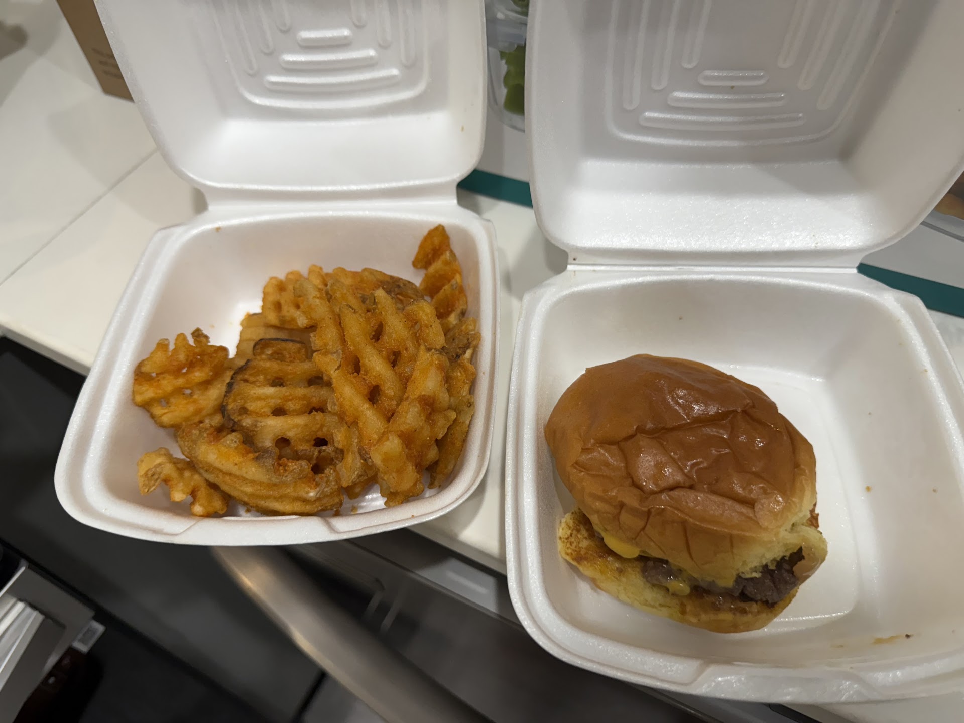 The bad is that the burgers despite having a good thin patty with a nice crisp have no flavor. They even have a sauce on there but all I could taste was the cheese on the burger. Not sure if my patties weren’t salted or if that’s just how they roll but the flavor was not great. The fries were fine but I mean it’s just standard waffle fries that you could order at most places that serve them.