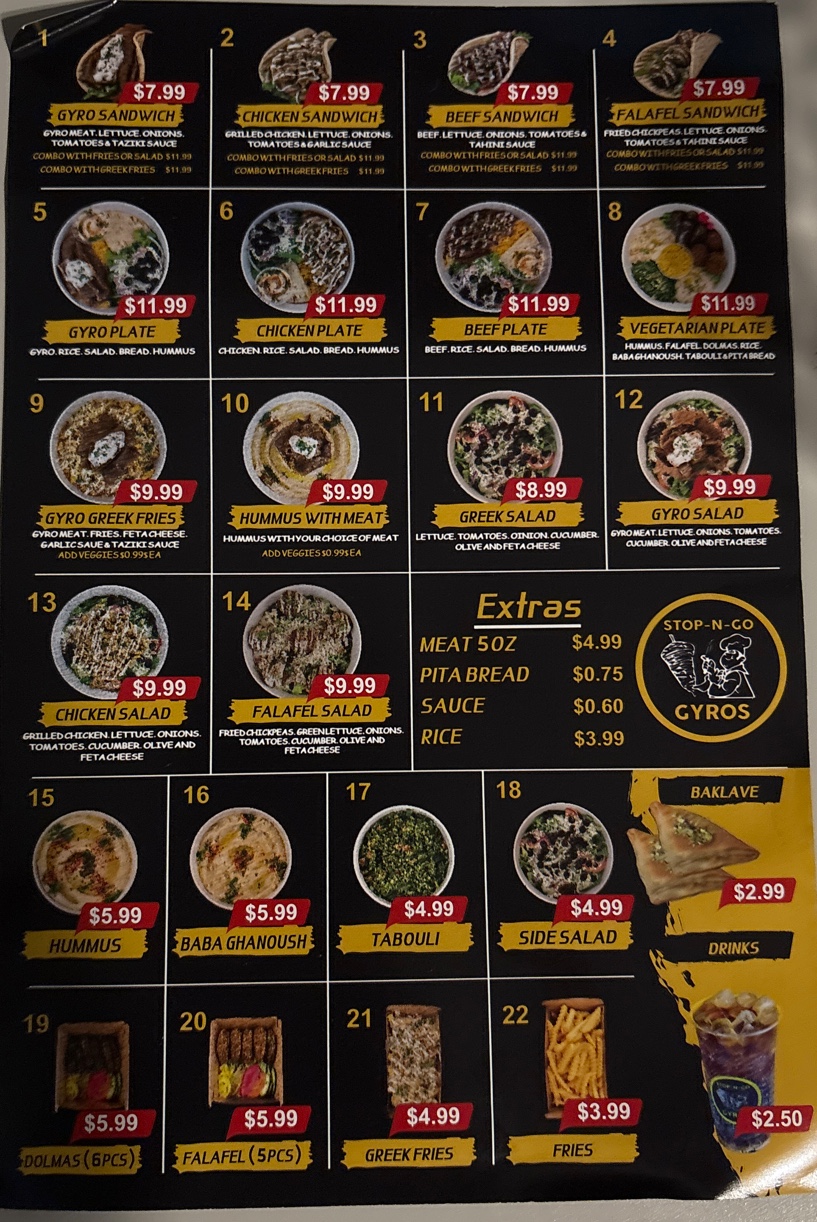 Stop-N-Go Gyros just opened, and theyâve already nailed it! If youâre into Greek and Mediterranean food, youâve got to give this place a shot. Their gyros are amazingâpacked with juicy, flavorful meat, fresh veggies, and the perfect amount of creamy, tangy tzatziki sauce. You can tell everything is super fresh and made with care.