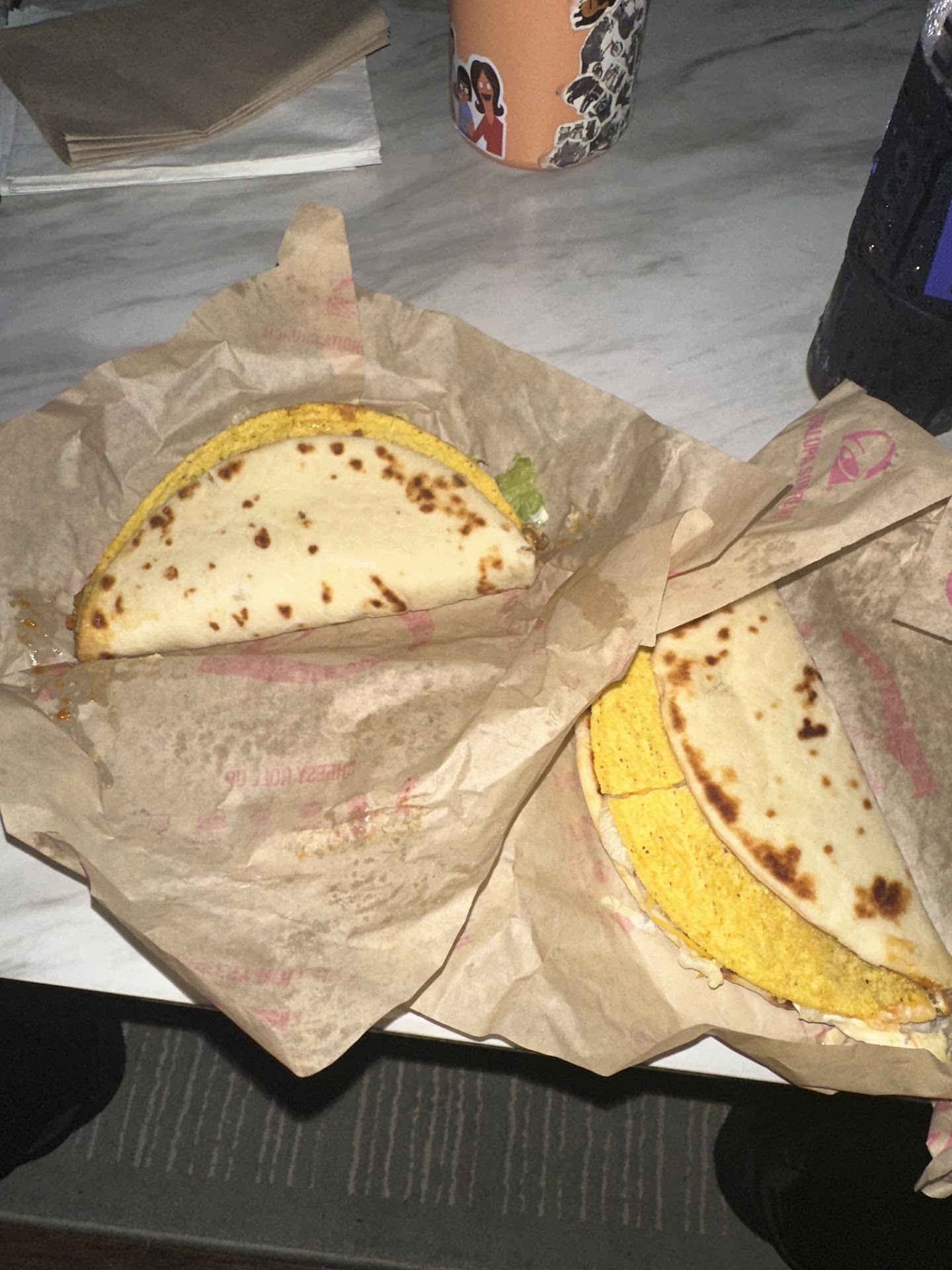 Ā Ā Ā Read moreSo we went in a group of about 8 people. Ofcourse the order was long - I mean, it was 8 people š. So let me start with the attitude. Towards the beginning, I saw that the worker was looking towards us and I smiled - I was given a smile which was tailed with an eye roll along with a whisper to another worker. After our order was put in, we knew the food would take a while and just wanted to know an estimate of the waiting time as we did have to pick up more food later on for other family members. When we asked, the lady with pink hair told us that it would take a while cause itās a long order (she seemed extremely irritated and we understood as it was about 8:30 pm ish and she was probably tired). I said, āIām sorry, I promise we are not trying to nag at youā. This women (with pink hair) proceeds squint at me, roll her eyes, and say, ā Ok CoOl ThAnKsā. While she does this, she smacks her fists on the table, twirls around with attitude, and starts talking to her worker friend. (while staring at us). Out of the 8, 6 of us were hungry and it had been A WHILE of us waiting, so we asked if we could get the cups for our drinks that way we could atleast have drinks to start. In the beginning they just looked at us like we were crazy and then they gave us the cups, which were the wrong amount with the wrong sizes. So POLITELY, we asked if we could get the right amount. We showed her the order on the account and she kept denying it in a rude manner until she said āNever mindā and got the cups. As the food came, we could tell that it was unorganized but we let it go since by now, it was 10:00 pm. OUR ORDERS WERE DONE WRONG ( mix ups with potatoes and chicken for multiple soft tacos. Some tacos even had missing pieces of food (which we paid extra for). They even had dips missing. Like honestly, this is ridiculous. Yes, taco bell is one of the cheaper places to eat (so we shouldnāt expect much) and I donāt expect the workers to be hyped up with energy at 10 PM, but they DO NOT have the right to speak to us like that or treat any customer like that. I advise that Taco Bell figures this...