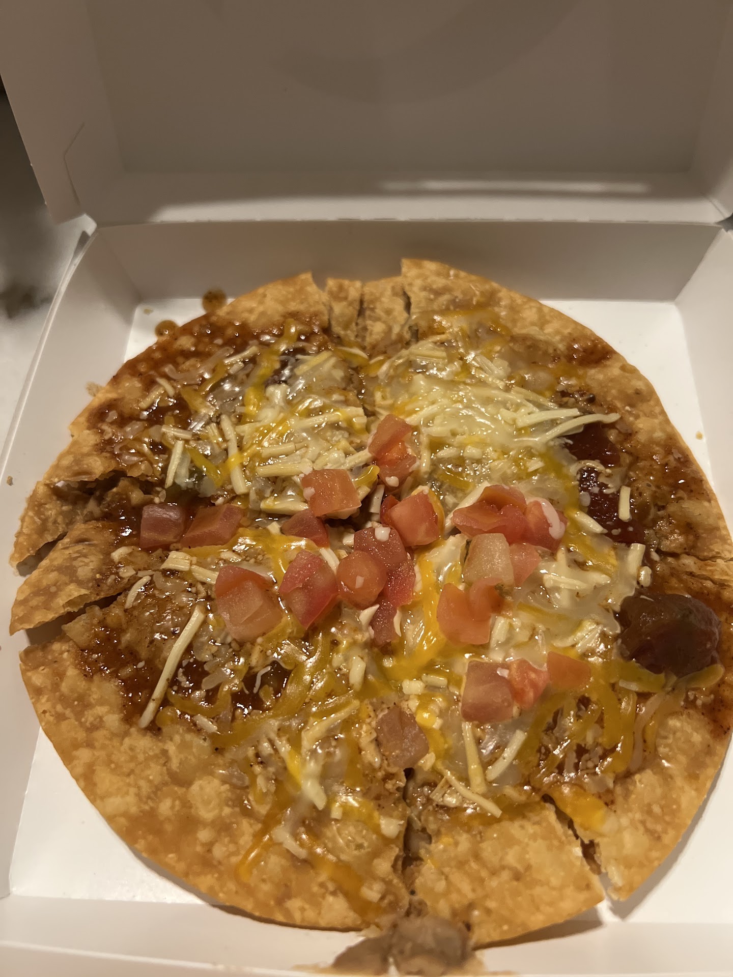 At 7:22 the order was placed for one empanada, 2 stake chalupas, with no lettuce and no tomato, 2 meximelt, and one large drink.