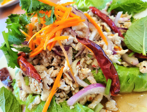 Read moreThe restaurant still looked new, atmosphere was clean and modern casual dining. It's almost fast casual since you self serve water and order at the counter (no sit down menu). There were a lot of appetizing items on the menu so we ordered 3 dishes: larb, yellow curry fried rice, and the Tahn Thai noodles. I think they got our spice levels mixed up because the curry fried rice was the only dish with any kick. It turned out to be the most tasty as well, with plenty of large chicken chunks. The larb was too mild (despite asking for medium heat) and I thought it didn't have enough fish sauce flavor. I choose this dish at many Thai restaurants in order to have a baseline. It is a northern Thai dish so perhaps not this restaurant's specialty? The last dish we tried, the Tahn Thai noodles is a potato noodle based dish, similar to Korean chap-che. We ordered this mild so it didn't have any heat. I suspect this detracted from the flavor. All in all everything was filling with good portions and plenty of protein. I would go back, and probably pick some more...