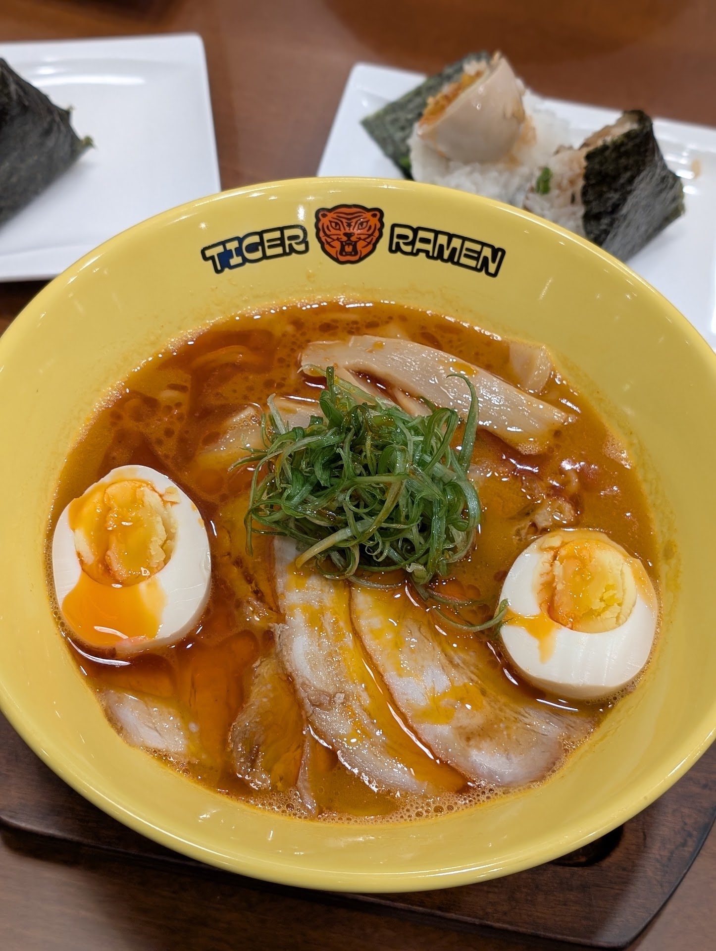 I got to try Tiger Ramen and it is the closest to ramen in Japan that I have had in the DFW area. This is the only ramen place around here that I want to go back to willingly. The broth here is great and different from pretty much all the other places around. The ones I tasted were chicken base and very flavorful. The one thing almost all the other places are doing wrong are over cooking the noodles. The noodles were here were もちもち (Al dente). That in my opinion, combined with the broth is what made it the most authentic to Japan. Also got to try the hand rolls. These were unique and tasty! I got to try the Spicy Maguro and Salmon. The Spicy Maguro was topped with slices of jalapeno and a dab of wasabi. The salmon were topped with capers and bits of lemon, a great combo. The kids meal came with the karaage chicken, french fries, shrimp tempura and onigiri. I can't wait to go back and try more of the menu. I would highly recommend this place if you are interested in trying authentic Japanese Ramen without having to go all the...
