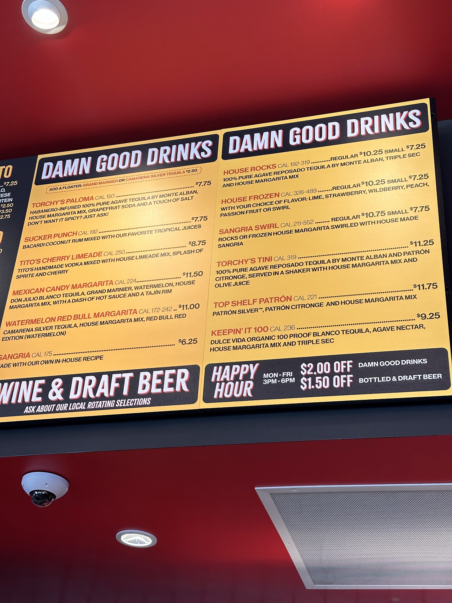 You won’t find a bad Torchy’s or have crummy experiences here. AND: you will probably have an exceptionally good experience. This location is new, already firing on all eight cylinders, and Elisabeth behind the bar ROCKS! Good job at yet another location, Torchy’s!