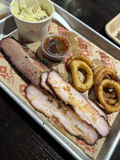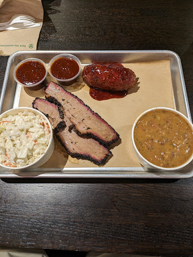 Read moreMy meal was a little over 7 dollars. That included a bottled 1.00 drink and a sliced turkey sandwich with BBQ sauce. I dined in. It may have been because I was fairly hungry getting here, but the food was pretty stinking good. Definitely better than Dickeys. The meat was tender and fell apart in my mouth. It wasn't that juicy but what made up for it was the thickness and flavor. There was a peppery taste to the BBQ sauce which went very well with the smoked meat. The size was good, or fair for the price. I did want pulled beef but the price was over 9 after tax for that. A little more steep than turkey. The bun was crisp on top and soft to bite into. The meat was warm but not hot. The BBQ sauce was cold. But again, I was too hungry to care. There wasn't a line today (Wednesday afternoon) and I was able to order immediately upon entering. Tables were clean, atmosphere was nice. There's a large selection of sweet teas I wish Id tried. I'll definitely be back for that though. A regular drink was 2.25. my drink was a lime mineral water. I'm used to sparkling water so it was really delicious. Nice lime flavor true to what it was. Very bubbly. They did have a flavor on the prompter I couldn't order that was discontinued. The mango mineral water. Wish I could've tried it. Overall I'll be back to try more later. Bring 15 or so dollars to eat a...