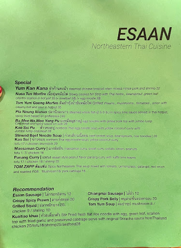 Read moreAfter finishing my work, I quickly called my friend to invite them out for dinner. This marks our third visit to Esaan, a restaurant we both enjoy. The owner kindly offered us a special drink that is not yet on the menu: draft beer mixed with premium grade green tea from Japan.