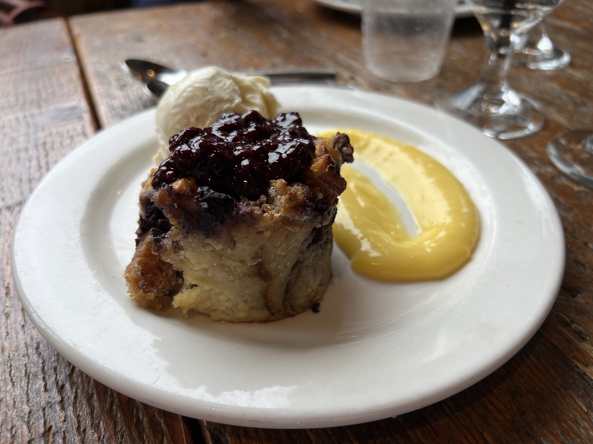 I ordered the rib eye. On the menu it said this dish had steak butter with that I was looking forward to. When it first came to the table I was immediately put off by what looked like liver pate on the top of the steak. I pushed this aside and tried the steak. It was phenomenal, the liver looking topping was the steak butter, I am guessing the wine in the butter gave it that color and the taste was to die for. The seasonal vegetables was a squash and green beans and tasted amazing, I wish I could have ate more of them. Overall my meal was a 10/10. I can't wait to go back and try more of their food.