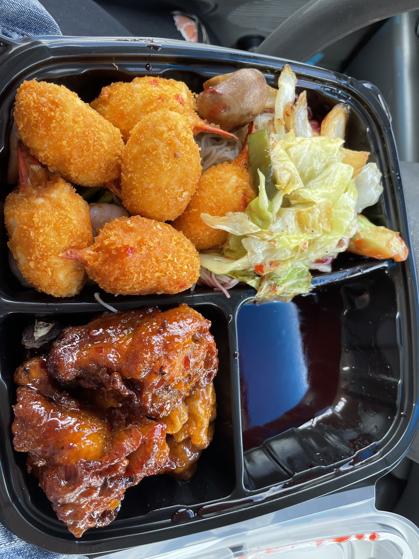 Read moreI liked this little place. It's cute, seemed to be family owned, and the lady that worked the front was very sweet and attentive. I accidentally spilled my water and she insisted that she take care of it when she saw me trying to clean it up. She then brought me a big cup of ice water after I rushed off with my partially filled cup in embarrassment lol (sorry again about that). All the tables were clean and our empty plates were whisked away quickly when she saw that were were finished with them. The orange chicken and mushrooms were really good and their jello cubes were the perfect texture. Red jello makes me super happy and at most places their jello cubes are like rubber, which makes me super sad. They charge by weight, but that didn't bother me because I don't usually eat more than one plate anyway. I feel I got a good amount of food and variety for the $8ish I paid. I'll go back...