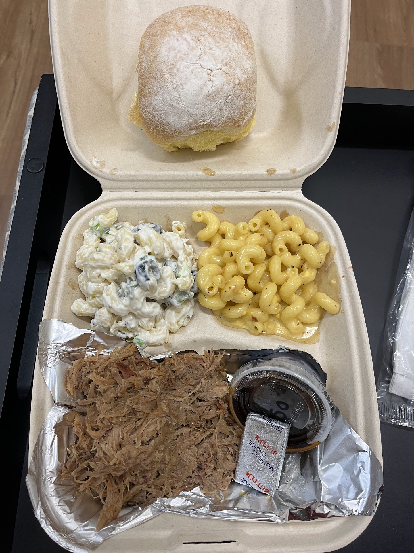Read moreSadly, I've had better. Saw the food truck and decided to give it a try. Ordered a brisket plate with Mac&Cheese, caujn tots, mango habanero sauce & bread for $15. Wait time was over 25 minutes, they give you a pager so you can wait in your car. Mac&Cheese had no flavor missing the salt, Caujn Tots were really good and crunchy. Brisket was okay, definitely needed to be dipped in a sauce, not great on its own. Unfortunately, the mango habanero sauce was disappointing. I was expecting a thick dippable and flavorful sauce, instead it was a watery sugary mixture, like sugar water with an after taste hint of mango. The bread tasted like cardboard. I'm originally from the deep south and I'm use to very flavorful slap your knee good bbq with every bite. This place was okay, if you have time to wait and don't...