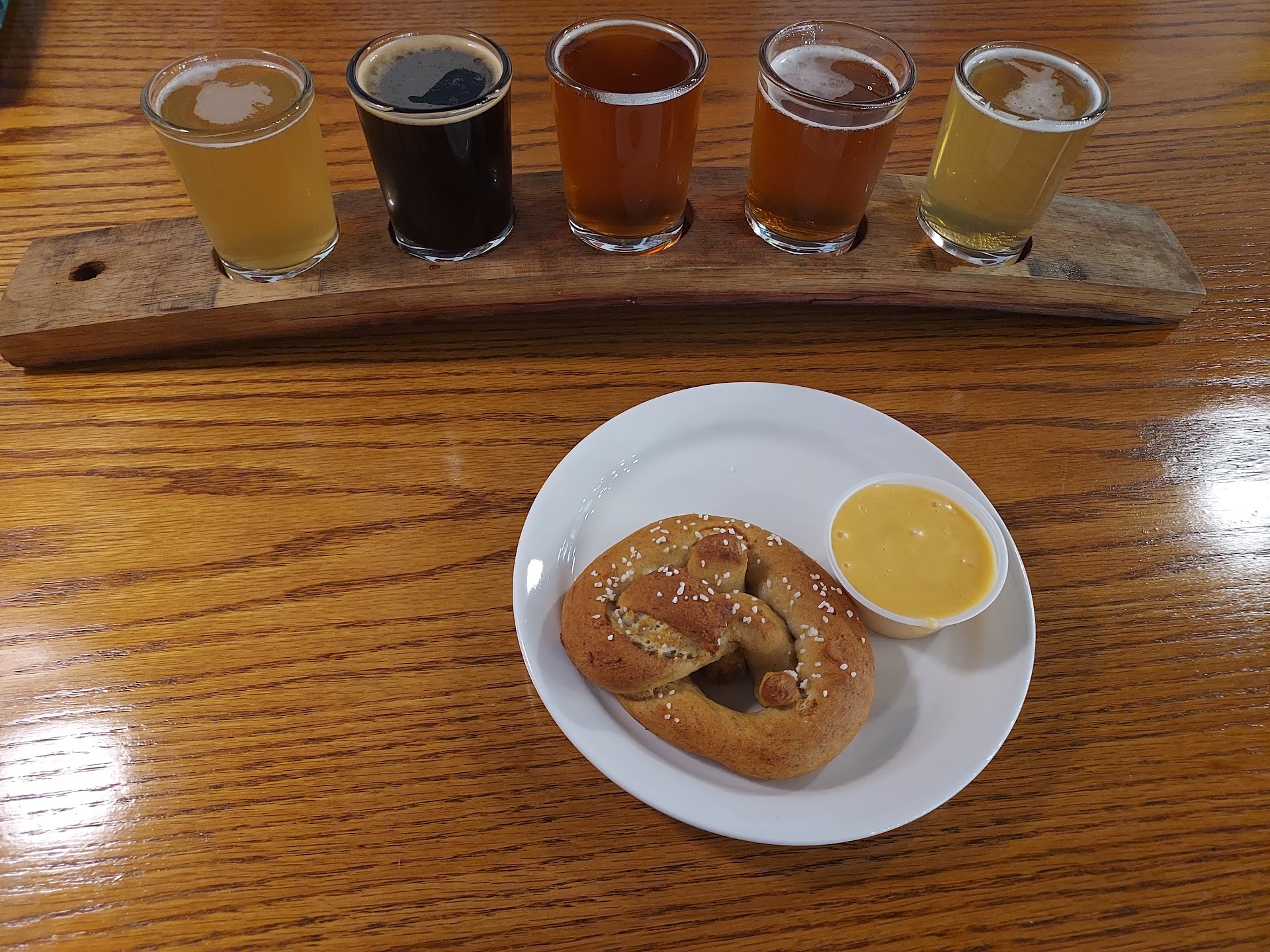 Amazing find for Gluten Free. First let me start by saying how JP and Ames are wonderful hosts. During my visit I tries multiple beers from hoppy to lager to stouts...there are multiple taps and multiple options...something to please everyone. Then I tasted the food. The Corndog was perfect. Mildly crispy outside and the right amount of "corn" to not overpower the "dog" as many gluten free items can zap flavor out of food, but not here. Then I moved onto a glazed doughnut and a lemon frosted with Fruity Pebble sprinkles.... yes Fruity Pebbles. Doughnuts were very soft in the middle and served warm. perfectly glazed/frosted. My wife who is not GF commented that the glazed doughnut could be her all-time fave. Then I came back for soft pretzels. Served warm, soft and salted with options for dipping sauce. The preparation of the food was nothing short of masterful. Meanwhile JP ...aka the Nutty professor of Gluten Free Brewing (I mean that as a compliment) walked me through the process to come up with the proper way to make GF Beer. It is nothing short of rocket science. This place will haunt me as it is too far for regular visits. LASTLY - There is a sign posted right at the entrance - No Gluten products allowed. Bierly - Where have you been my...