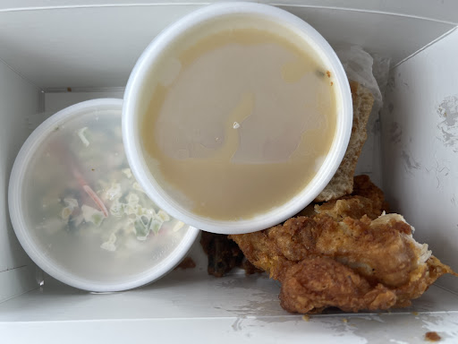 Read moreFirst time I've eaten here and both my friend and I really loved our food, he got catfish and I had 2pc fried chicken (mash potatoes, cole slaw, and I also ordered some corn nuggets which were great, it was a small amount but perfect for me). Price not much more than KFC but 10x better food (both meals ended up about $12 each, after tax tho not including tip). Service was fast and friendly. I give it 5 stars for what it is, which is pretty cheap and quick homestyle food. Inside ain't pretty, basically a hole in the wall but not in a wall. I'm not one to care about that but since "atmosphere" is included, that's the explanation. Also since it's winter, every time the door opened brought the freezing air in. No big deal but stay...