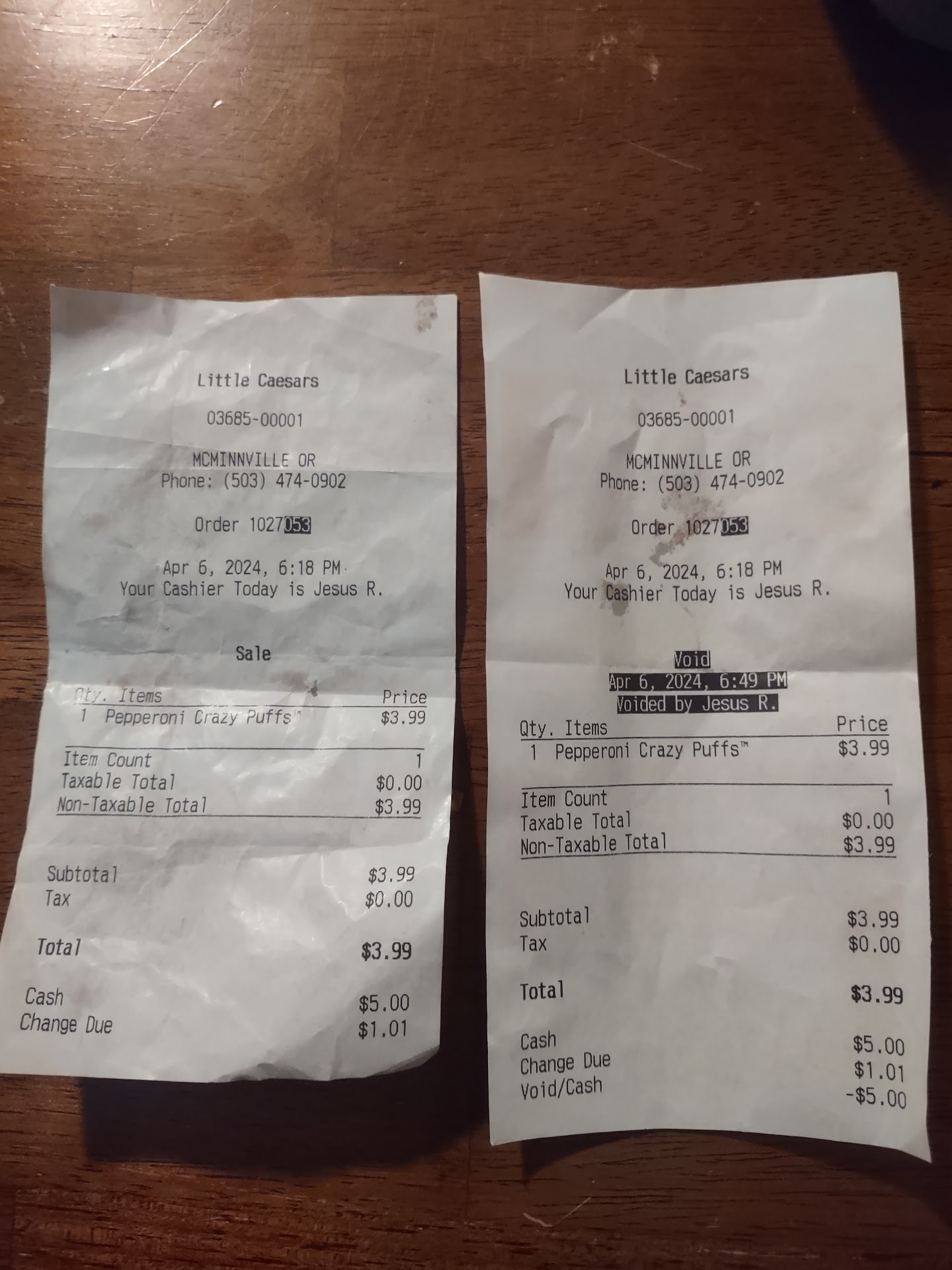 Read moreTerrible service today. I came in to try the new crazy puffs only. I was told it would be 10-15 mins. I waited over 35 minutes before I asked if my order was ready. The employee ran off with my receipt to the back where I couldn't see. After at least 5 minutes she returned and said it would be an additional 15 mins before my order was ready. I was shocked by this, especially after all this time and seeing other come in, order and receive while I'm still waiting. I demanded a refund and told them I don't appreciate them wasting my time. The employee ran off again to the rear of the store where she couldn't be seen for at least another 5 minutes. A different person came out in Adidas jacket only and said "You need a refund or something?" I said yes your just wasting my time, I'm not waiting any more. I asked for the manager, he responded with that's me. Then I added for his name and he refused and said he doesn't want to give me his name. I received a 5 dollar bill as my refund instead of the $3.99 I paid. The receipt shows the name Jesus R. I will never return to...
