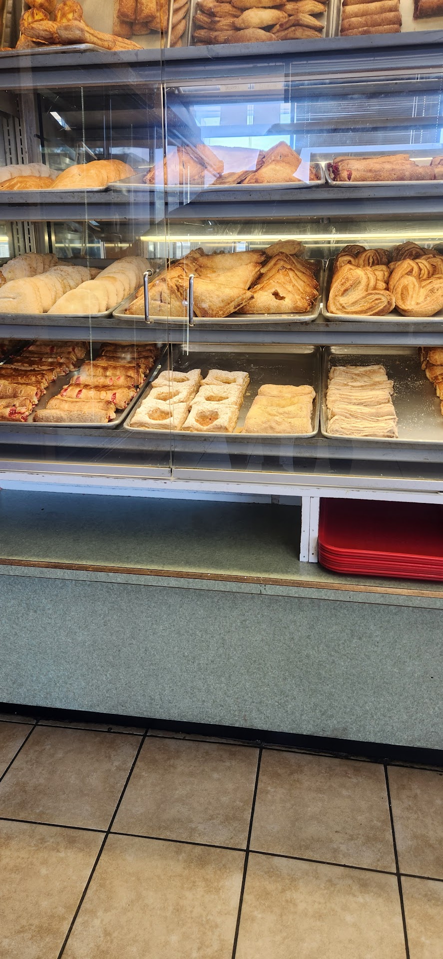 My mom and I happened upon this bakery when she visited this past weekend. The store is very clean and well kept, and service is friendly. We couldn't help ourselves and ordered quite a few things: some of the dinner rolls, a couple of turnovers, an empanada, and two things I do not know the names of (a small chocolate covered cake and a cold cake made of what seems to have been layers of a fine pastry and a cream of some sort, topped by a variety of fruits). All of them were delicious and didn't last the weekend.