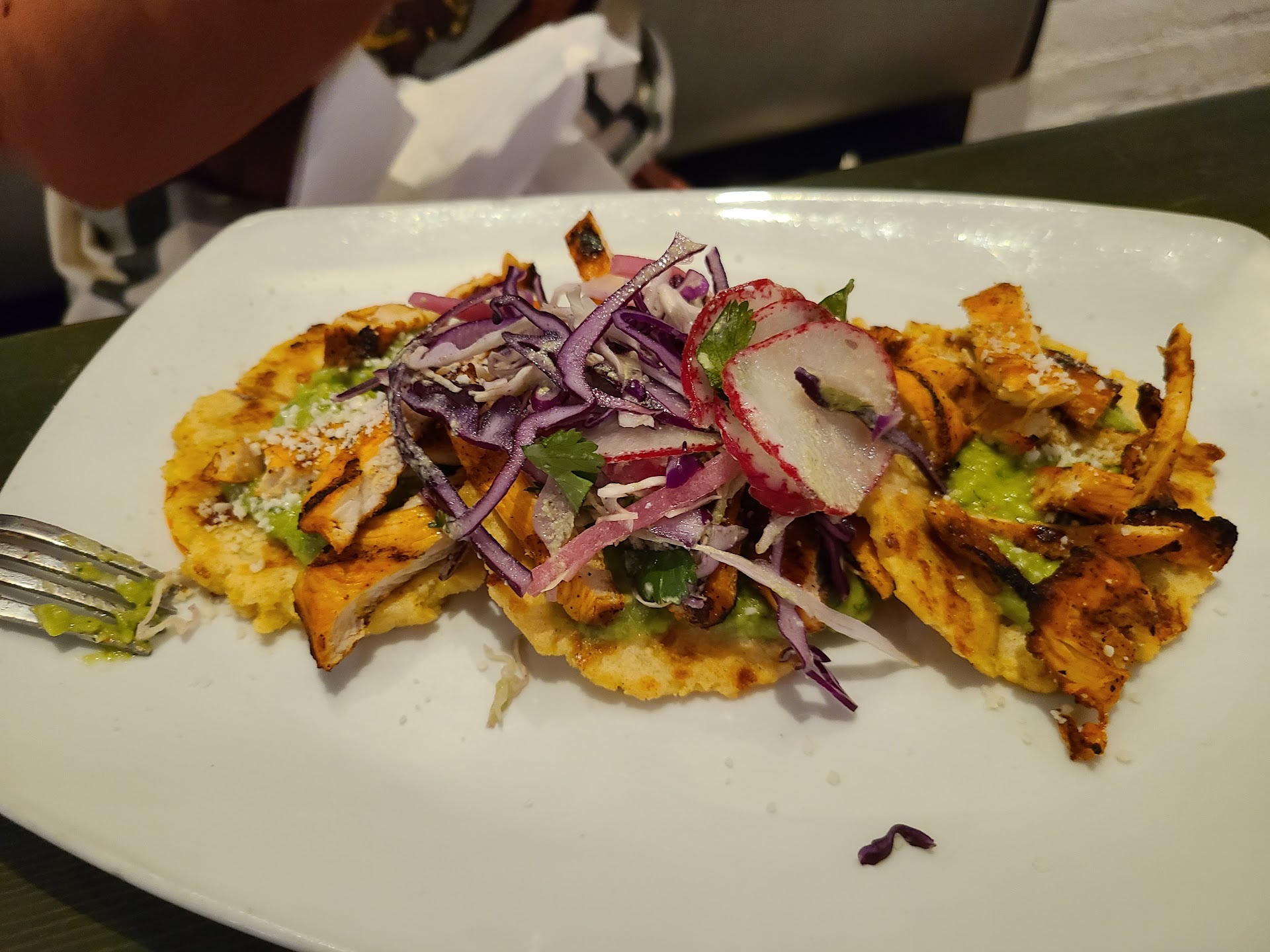 Read moreMy friend and I stopped in for a late lunch this past Saturday and had a most pleasant experience. I've been an ethical vegetarian for 32 years so it's very important to me that I don't eat any animal lard as it will upset my stomach. When I asked our waiter, Genaro, if there was animal lard in the empanadas, he said he didn't know, but he would ask the cook. He did not act at all irritated by my question and told me he was happy I let him know I have dietary restrictions. I was thrilled when he came back and assured me that they do not use lard in the empanadas or beans. My friend and I ordered the empanadas with seasonal vegetables and we both absolutely LOVED our food, and she's not even a vegetarian. The empanadas were perfectly seasoned (I didn't even have to ask for salt) and the veggies inside were perfectly cooked. We could not have been more pleased with the service or food. My tamarind whiskey sour was tasty too. Genaro was very kind and patient. I'd give 10 stars if I could. I may just have to make another trip back to McMinnville just to shop at Oodles and eat at Pura Vida...