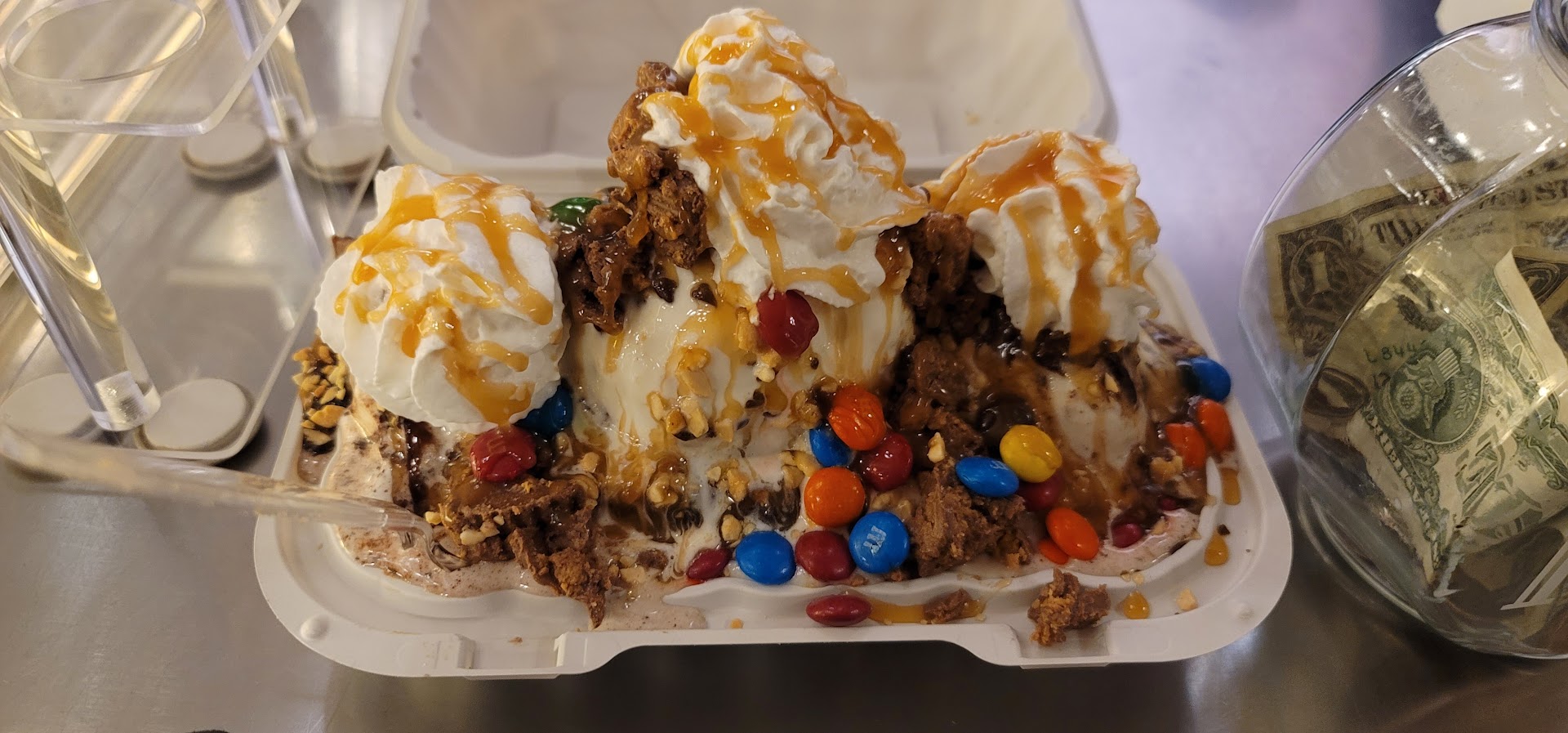 We got a banana split this last trip and the only topping we recieved was hot fudge. Was more like a hot fudge sundae with a banana and there wasn't a lot of hot fudge for a $10 sundae.