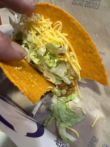 Read moreFood is never consistent. Got a burrito supreme that was completely unbalanced in construction and had so many onions in it that I couldn't eat it. I'd get one bite of nothing but lettuce, one bite of nothing but sour cream, and so on. Terrible. Update 11/22/24: just wanted a bite to tide me over, ordered one crunchy taco supreme with two mild sauce packets. I was handed a bag without sauce and requested the sauce again. Pulled over to dress my taco, they gave me a soft taco. Drove around again to get my order corrected. They gave me a regular crunchy taco, not supreme, and it wasn't wrapped, so when I tried to pull it out of the bag everything fell out. Won't be back, especially when there's an independent taco truck that has delicious food, just...