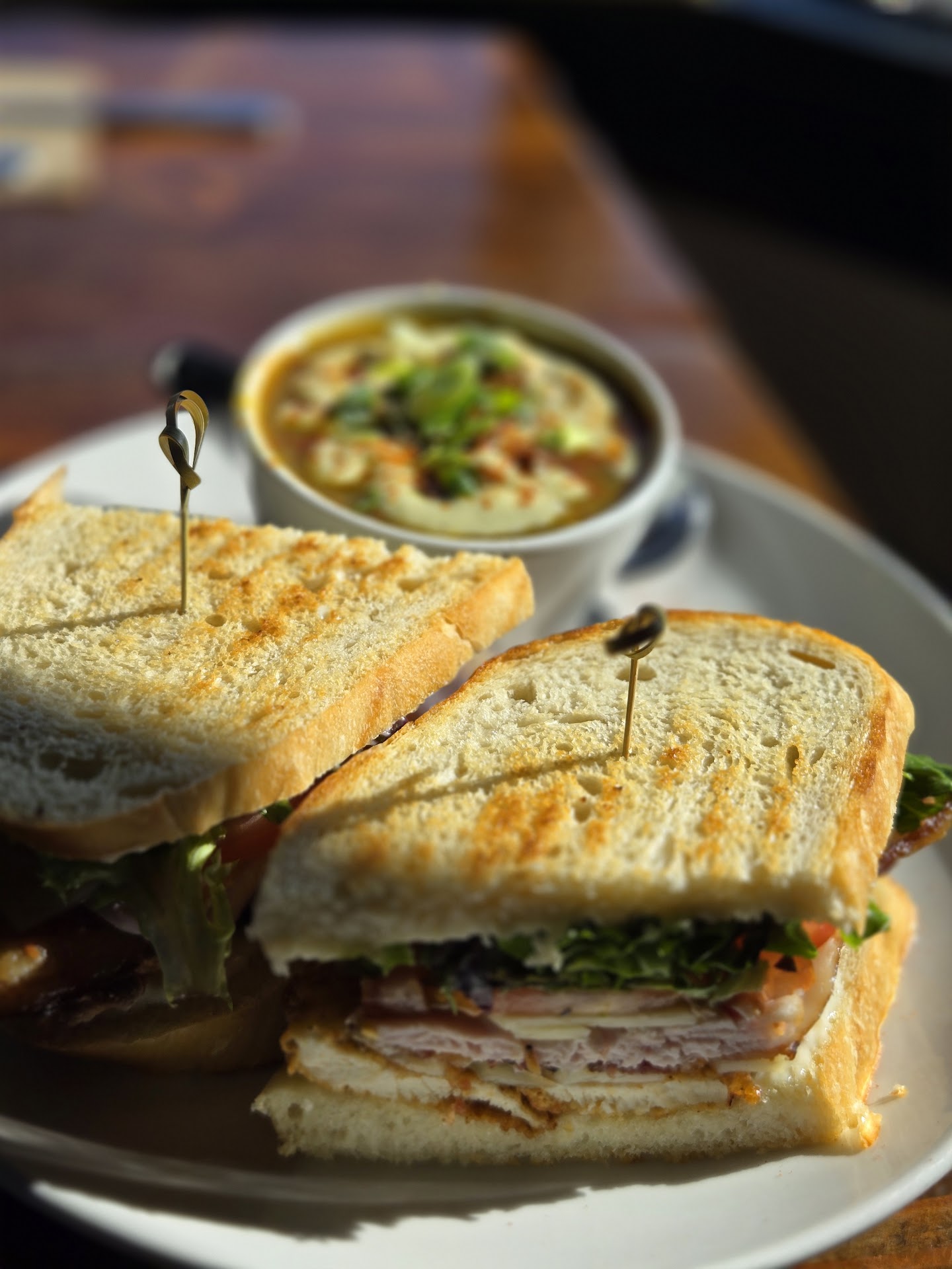 When the server told us the specials for the evening I was amazed they were trying something so elegant. It was the surf and turf that had a sous vide steak with scallops with a pomegranate sauce and honey glazed carrots. The scallops were too delicate for the pomegranate sauce and unfortunately over powered it, however there was not a lot of the sauce and it was very easy to avoid. The scallops themselves were prepared to perfection, soft and delicate. The steak was amazing, the texture was perfect the seasoning was to die for, it had a beef sauce under it that was extremely well balanced. The carrots were perfect and the mash was velvety and delicious. A nearly perfect meal, I could eat that everyday. I don't normally do desert but the server offers us bannana bread, once again I thought this was a strange offering but seeing how well the kitchen handled the main course I had to see what this bannana bread was about and I was not disappointed. A pillowy slice of bannana bread under vanilla ice cream with a caramel drizzle that was amazing. I feel like it could have benefited from something tart to cut into the three layers of sweet but overall an amazing dish. Our server was amazing, she immediately complemented my wife's shirt and this made my wife very happy. I love it when she is beaming like that. The server was very friendly, joked with my wife. She always had more water as soon as I finished my water and knew the menu very well. The resteraunt was hospital clean, the table were arranged beautifully.