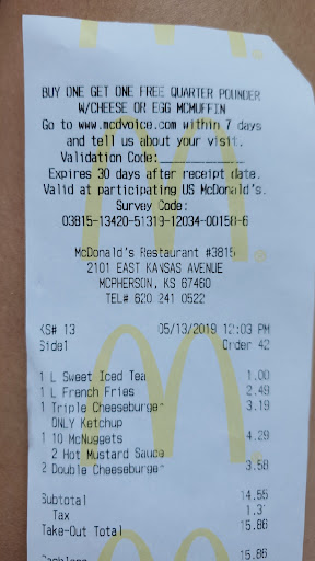 Read moreThis is honestly the worst McDonald's I have ever been to. I have witnessed a manager scream at an employee for not the employee's mistake but the manager's, 99% of the time I either get the wrong food, old food, or I'm missing food, and many of the employee's are incredibly rude. My most recent experience at this McDonald's is by far the most infuriating. All the food was disgusting and old, and I was missing a large fry. I live on the other side of town, so I had to waste the gas to go back to actually get my food replaced. They only replaced one out of two orders of nuggets, and the fries I got were all dumped out in the bag almost like they just put the fries in and then threw the container on top. Not only that but the employee's were down right rude. I always try to give places multiple chances and I understand that mistakes happen, but there is no excuse to get an attitude when someone points out...