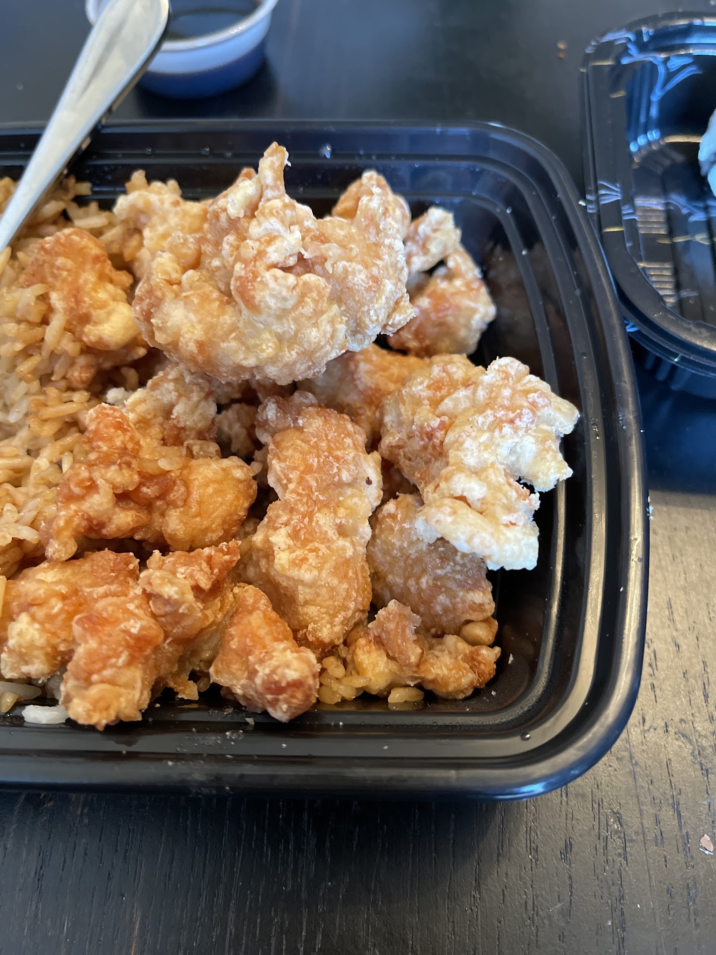 Read moreIve been disappointed in my life, but you guys take the cake. Do you even know the ingredients for general tso chicken?? Here's a hint. It's not getchup, onions, and garlic. Cooked to a gooey disgusting perfectly pale chicken bits. I think they boiled them. On to the shrimp rolls. One bite, and they got tossed. Tasted like there was dirt still in em you know that rotting veggies taste. Yeah that's it. But mixed with wet cardboard. The crab rangoons should be renamed deepfried cream cheese flavored toilet paper balls. No crab. Just rangoons there. The shrimp fried rice was a little better than I expected but again overcooked mush masquerading as something special. And today my bowels are so confused as to how to feel. Don't think I'll be gracing this establishment with my presence or money ever again. Atmosphere there is like a fish warehouse. Full of drunk child workers. However the price point should have reflected the quality. I was surprised at how inexpensive it was, and...