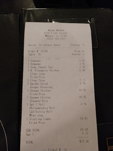 Read moreMy husband decided to surprise me with sushi for lunch at work today. He stopped by Asian Harbor in Mebane. We go there often and it makes a nice lunch. When we unpacked the food I noticed it didn't look like what we had ordered. Sure enough they had half the order incorrect. My husband had ordered the incorrect roll for himself but my order was wrong. When I called to let them know about the mistake the person on the phone told me that he had put the order together and that it was correct. I explained that my rolls were only half correct and didn't receive the crunch roll. He argued that it was in the container together. I explained that I know what I was looking at because I order the same thing every time I go in. I asked to speak with the manager and he wanted me to explain the whole situation again. He told me that the order went out correctly. after 5 minutes of this I told him the next time my husband and I came in they could pick up our dinner. At this point the manager told me he would pick up my dinner but not my husbands. I told him it was ok....We wouldn't be back again. The customer service wasn't worth the time and effort. I'll take my business to someone who really wants...