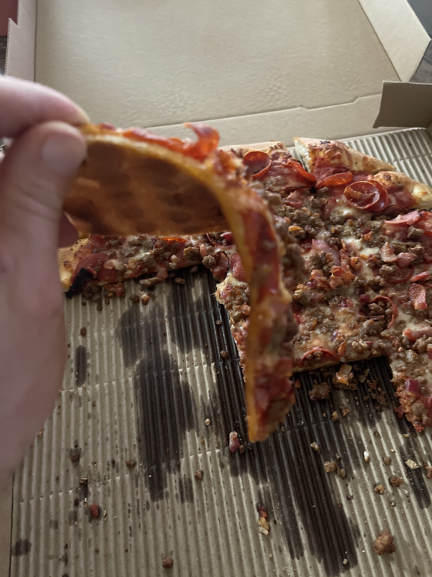 The positive: it’s good pizza and a pretty good variety for being local. The wings are good and even for being late, the food is still warm when it gets here. The delivery drivers are usually friendly and sometimes have recommendations that are helpful.
