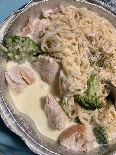 The pizza: Pale, thin, unseasoned, soggy, flavorless dough and crust. Unremarkable, unseasoned sauce. Toppings were canned, and low-quality bits of deli meats that pooled in a soupy middle. I feel like I really need to emphasize how bland the dough was. Might be good if you have dietary restrictions or if you’re one of those people who considers pepper “too spicy”, but if not you’re going to need to salt and pepper everything.