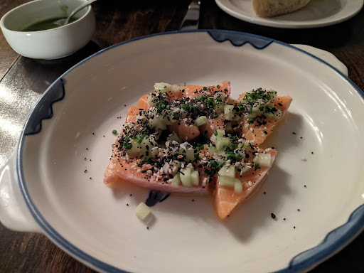 We'd read that there were only 26 seats. They removed 3 center tables to create an intimate space. The only issue was a group of 4 20-somethings very lacking in inside voices. They were boorish at best. However, Dylan, our server, was attentive and descriptive of the apps and entrées. To top it off, the nicest couple sat next to us. We were almost like old friends reconnecting.