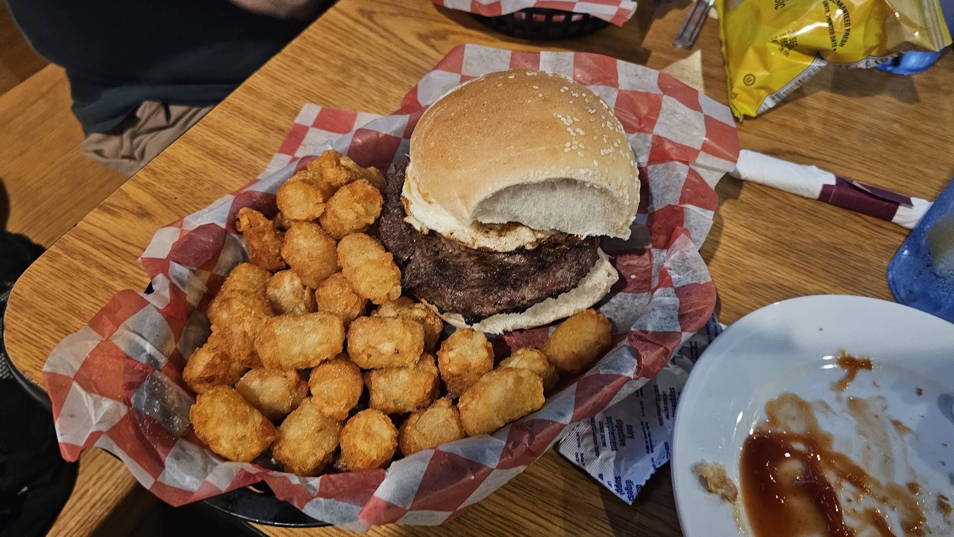 Cara and Chicken Salad! Superstars! Cara our waitress was exceptional! We never wanted for anything. She gave us many tips about the menu, since this was our first time there. We appreciated her so much! What a great waitress! And so friendly! We loved her! Now to the food. My friend got Hawaiian Nachos. The nacho chips tasted stale, and the shredded chicken was drenched in barbecue sauce even though we asked for light sauce. It is absolutely unappetizing to look at. It just looked bad. The chicken had an odd color and looked canned. We left 3/4s of it. It doesn't have a good look. It needed less chicken and more mango salsa. Now, I was torn between the chicken salad and the pork roll sandwich so I asked for a taste of the chicken salad because I'm very particular about how my chicken salad is made. The chicken salad was delicious! I am so picky about chicken salad. It has tiny cucumbers in it, poppy seeds, onion and some mayo, and it was absolutely delicious. I will be back for that! We came for dinner so I wanted something hot. So I ended up ordering the pork roll and cheese sandwich and decided we would come back for lunch and order the chicken salad then. I ordered the pork roll well done with fried onions. When I got it the pork roll was not cooked well done, and there were no fried onions on top. So it had to be sent back. Cara put it down, but the chef did not follow her orders. But when it was finally done correctly, I really enjoyed it. There is an upcharge for onion rings, but that's what I wanted. And they were crispy and very good! Not really sure about the food, but we are going to give it another try because Cara really was the bright spot in our meal. She is really an excellent representation of what an owner would want for their business. You need 10 Caras! We will be back to try other items on the menu and give it a second chance! It's really a fun place, lots of seating. And even the food runners were very nice and friendly. Thankyou Cara for being the bright spot in our...