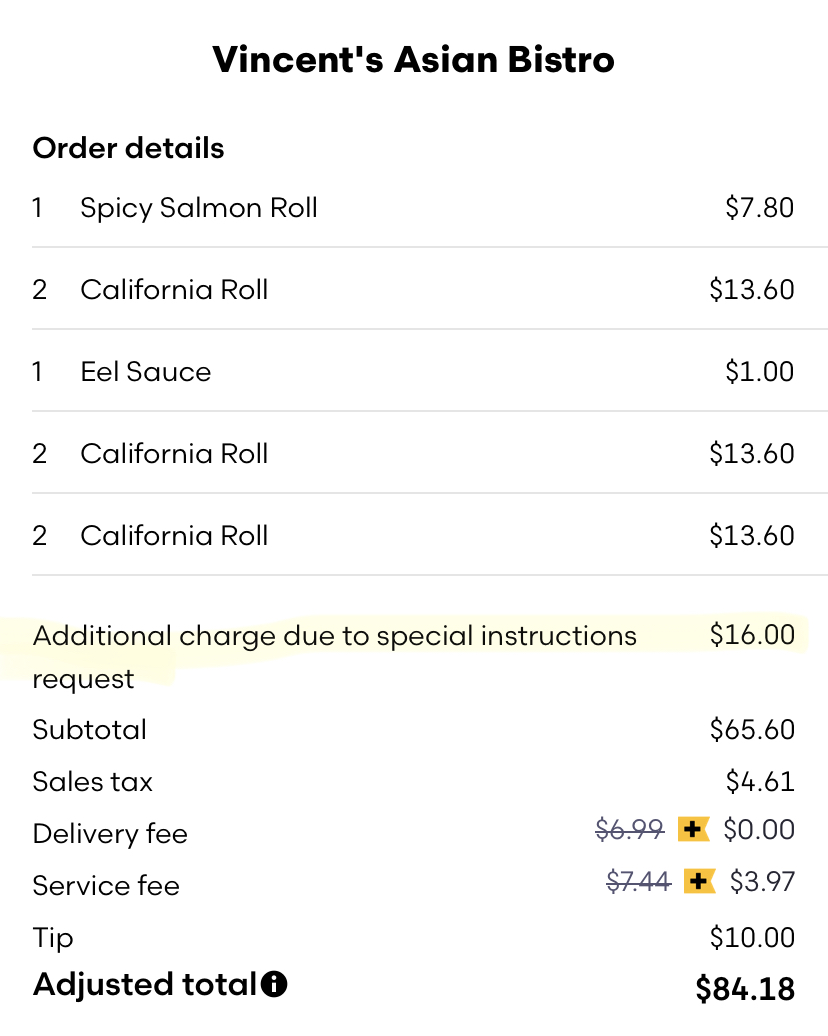 Ā Ā Ā Read moreI have ordered from this place 20 different times! And in my notes I tell them to remove everything but imitation crab, avocado and rice And each time they have charged me $1 extra to add shrimp to each roll! this last time they tryed to charge me $16! Trying to say it was now $4 per roll! I told them that it has never been that much! And I wasnāt going to pay $16 for literally 4 shrimp! Then started yelling at me telling me that I canāt customize my order! I said āyouāre not going to tell me how to orderā literally, they have the worst customer service ever! Why would you yell at a customer because you decided to start charging four times...