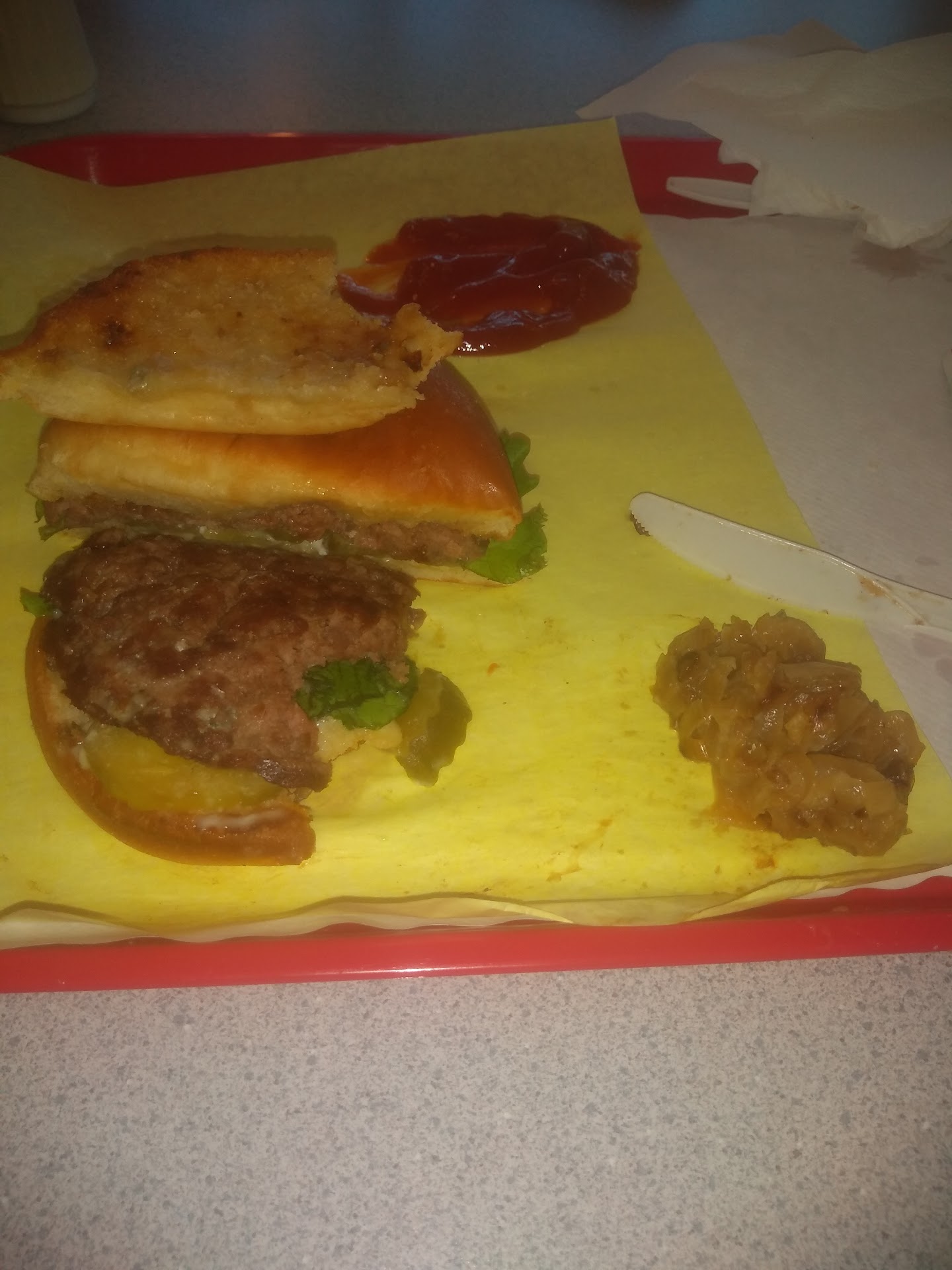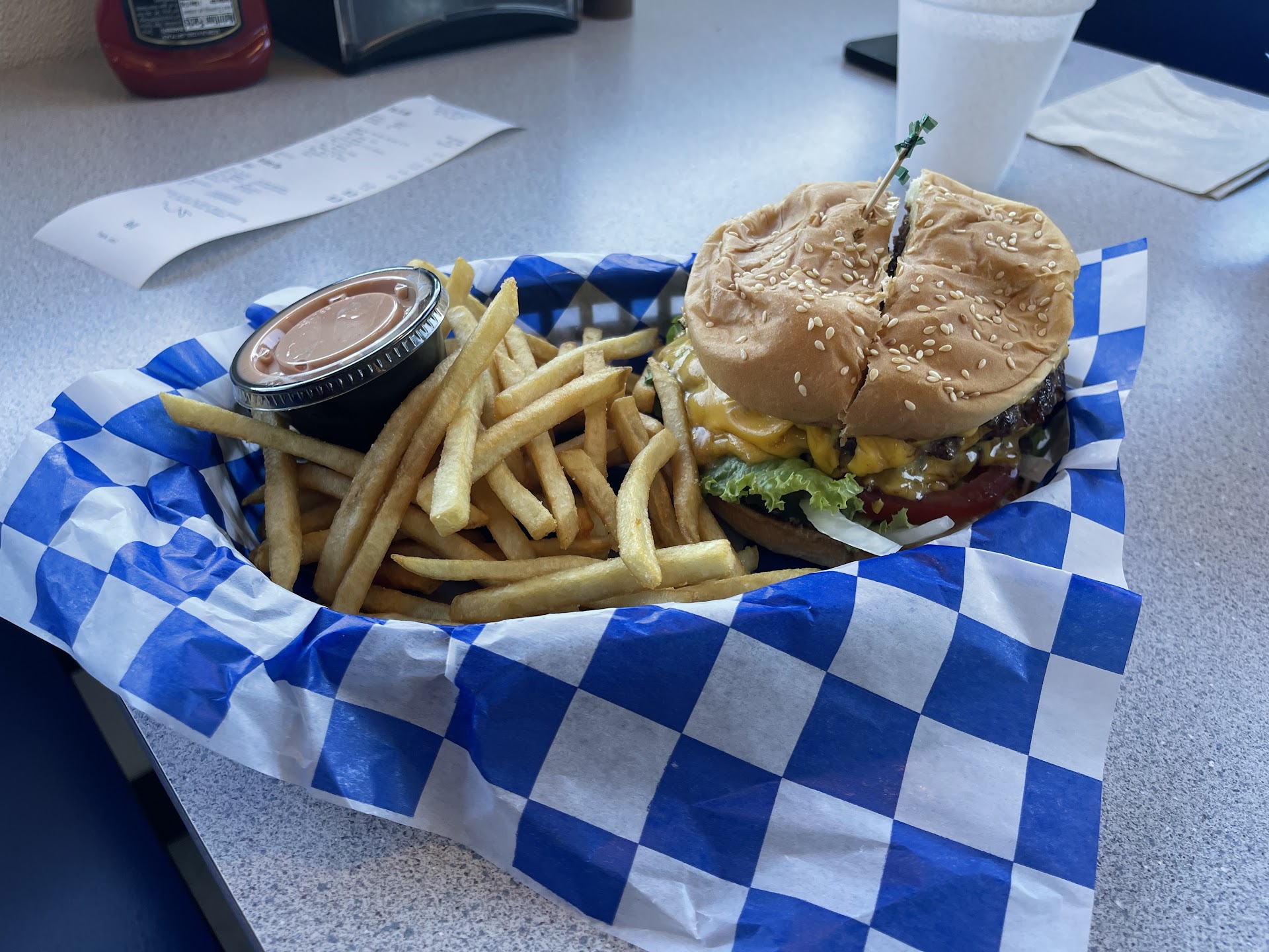 Read moreMysteriously my review disappeared. I left one here a couple of months ago. I went in with huge expectations, because this place has been recommended to me by several people. I get up to the ordering counter and the guy tells me that they have a blue cheese burger with Oregon's best blue cheese. I love blue cheese so I ordered it. I got it to my table and I took one bite and it was nasty. They had mixed grilled onions in with the blue cheese. Onions and blue cheese do not go together. The guy that took my order walked by the table and asked how it was. I told him that I couldn't eat it because of the onions and he turned around and walked off. Didn't say another word. The fries were good. As far as I'm concerned if you going to make a burger that has national award-winning Oregon blue cheese on it you don't ruin it with onions. He told me the cheese that they were using cost $32 a pound. If you're paying $32 a pound for cheese you should let the blue cheese be the star of the burger don't kill it with grilled onions. I sure wish I knew what $32 a pound of award winning blue cheese...