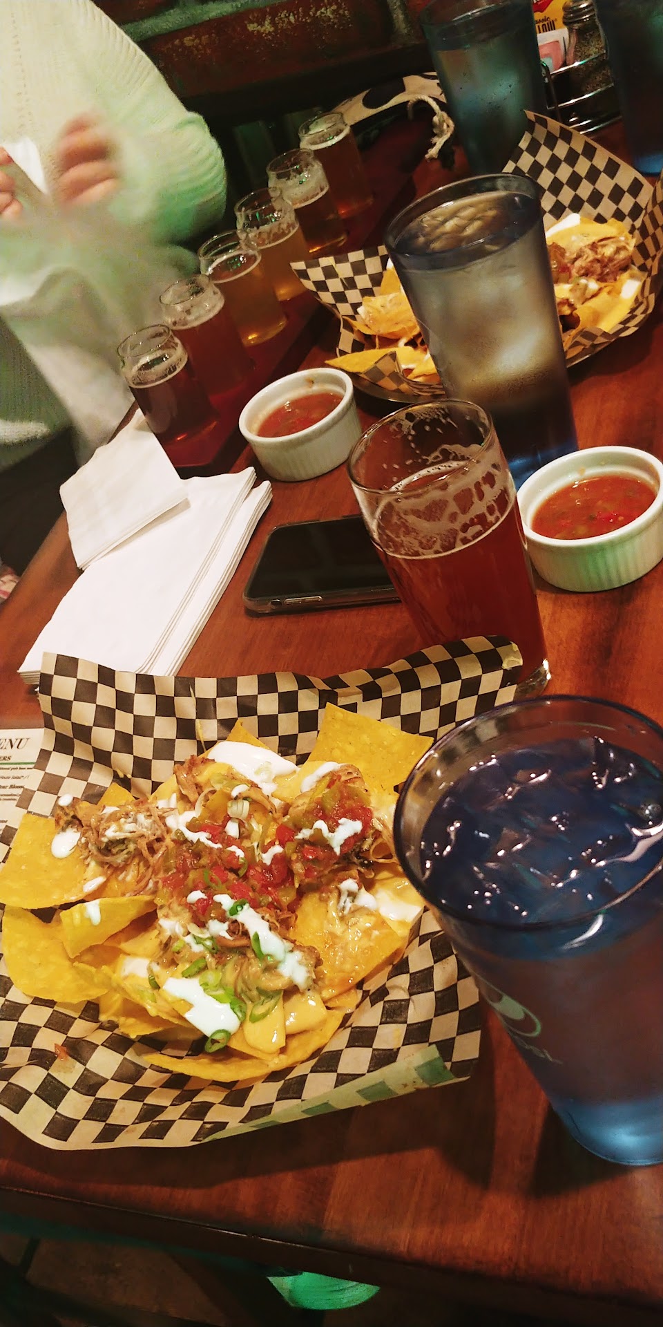 Read moreWhere to begin- we used to love this place, with good food, drinks, service and atmosphere- but tonight showed just how far it has fallen. The single worst food experience of my life. By no fault of the single server and single Chef on staff tonight, as anyone knows who understands restaurants knows, it all trickles up to owners. We waited an hour and a half to recieve our two appetizers and five entrees for our party of four adults and one very hungry toddler. There was something wrong with every single item- child's burger was undercooked, queso dip was bland and without salsa as described, pulled pork nachos was half the portion it used to be, burnt, and with barely 2 bites of pork (for 14 dollars?), salad had no croutons (out of ingredient) Mac and cheese was missing artichoke as ordered, antipasta was subbed with chicken as salami and pepperoni where both missing (out of ingredient) and I waited over 30 minutes for my second pint, at which point I really didn't want it anymore, until I recieved 2 at once as an overdue apology from the server, which I had to chug before leaving instead of enjoying with my food. The televisions in the bar area even displayed an appropriate "out of service" message, in addition to the lack of music that used to play, forcing us to wait in silence. We hadn't been here for over a year since it changed hands/owners, but we can confidently say we will not be giving it another chance, as it's clear the owners don't care to stock the kitchen, staff appropriately for even a Sunday evening, or clean the floors for that matter. Goodbye Bricktowne! You...