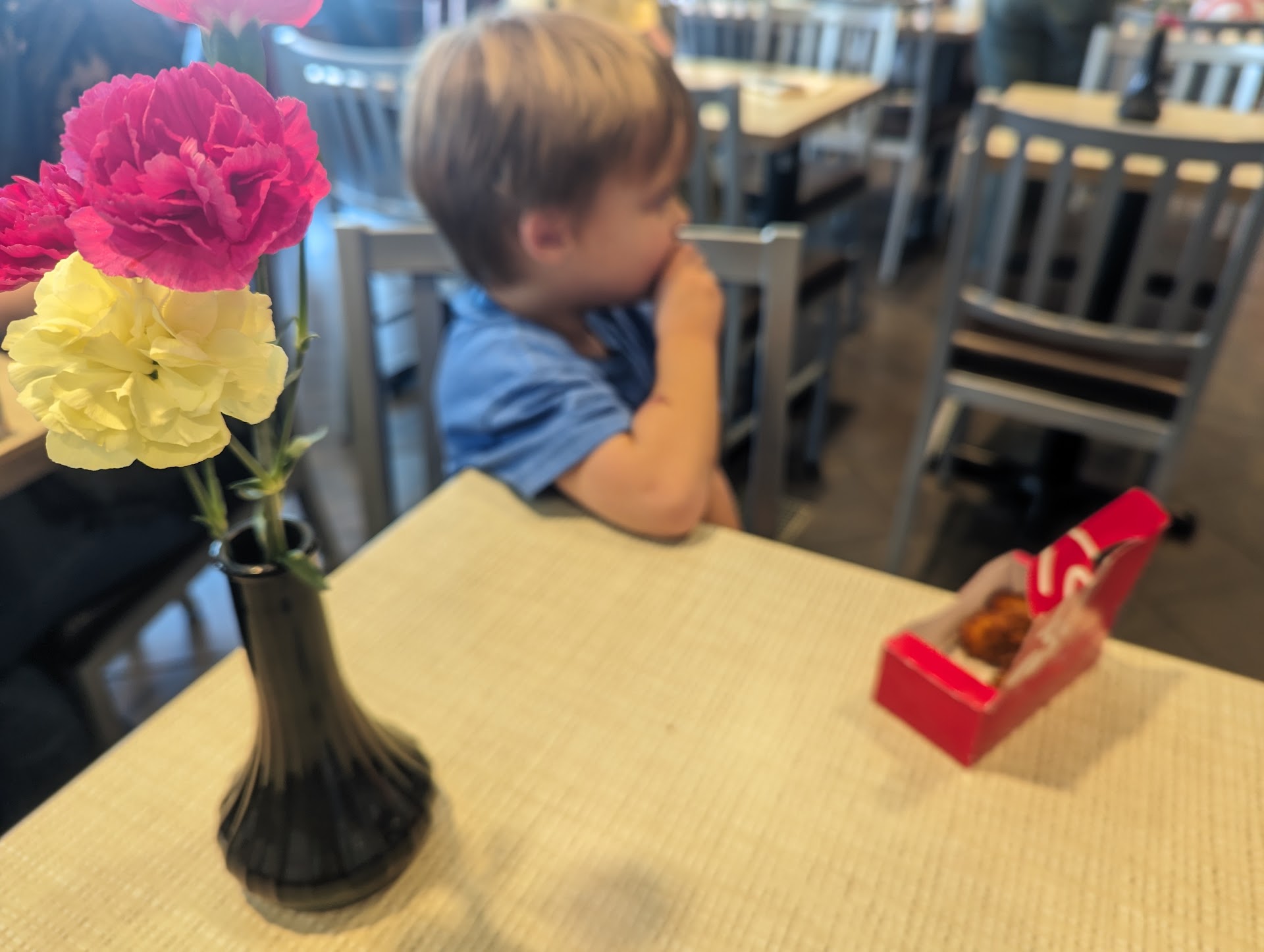 I went to this Chick-fil-A location over Easter weekend 2024 for a Saturday lunch excursion. It was packed! So much so, the friend I was with, her two young sons, and me ended up dining outdoors. Thankfully, it was a gorgeous weather day! I chose this restaurant, in part, because living in Alaska we do not have a Chick-fil-A. My daughter's favorite restaurant when traveling is Chick-fil-A. In honor of her, since she was not with me on this trip, she asked me to order her favorite meal: Mac 'n Cheese, Waffle Fries, and a Frosted Lemonade. 🍋 As in the words of my father when eating Chick-fil-A's waffle fries, "It's a whole potato!" That's right sir, and they are tasty and amazing and all things wholesome and good! As for the Frosted Lemonade, it's like a dream-cicle in a cup. One of the best things to drink on a Spring/Summer day! While eating outdoors was nice, the views are of a parking lot so the outdoor atmosphere is not noteworthy. We did head indoors after eating for my friend's young boys to finish their last few bites and to allow them to visit the indoor play space. The indoor atmosphere at Chick-fil-A locations is typically a delight and this location in Oregon was no different. The carnation flowers on each table has forever been a great touch and elevates the dining experience for everyone! Plus, who doesn't like signage that makes you smile? By the time we went back inside, the lunch rush had subsided and there were a few empty tables to be found. The facility was kept clean by attentive staffing who would clear and clean each place shortly after each party of individuals vacated their seats. Overall, Chick-fil-A gets a full five-star rating! Outside of the fact that Chick-fil-A's play place could be bigger, there is very little to...