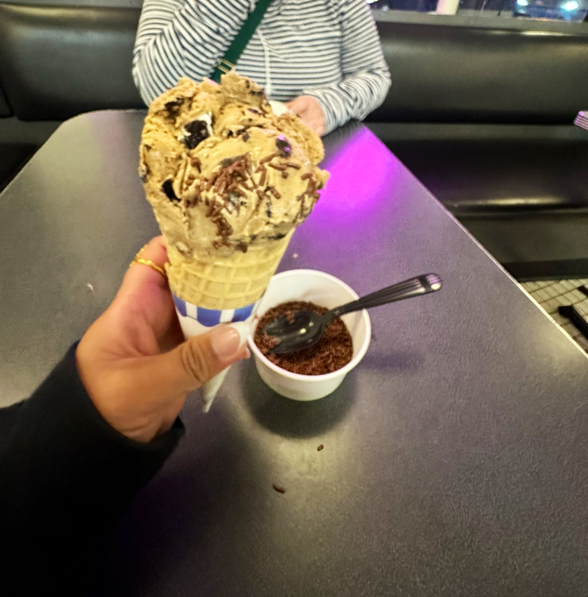 Environment - Nice and Cool as you expect from an Ice Cream parlor its heavily Air Conditioned which is amazing to feel on a 102-degree day. 5/5 stars.