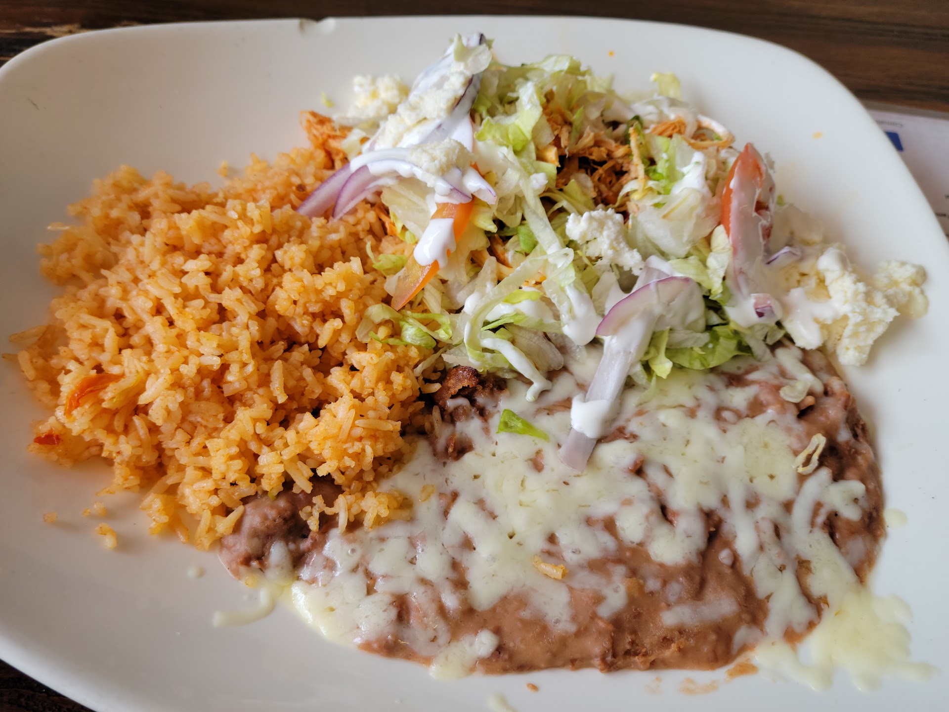Read moreI live in this neighborhood where we have so many wonderful cooks making Mexican and Hispanic cuisine.inasdimed since this restaurant was located here I assumed it would be good. It was not. Not authentic at all. Maybe incident know enough about it? This food is the most white washed crap I’ve ever eaten I’m shocked (and embarrassed on behalf of the white race that anyone can eat this bland stuff and think it’s good.) beans out of the can, bagged salad, no spices to speak of, not a pepper in sight. Omg. If you are one of those folks who like “American Mexican food” ( apparently bland and without spices or flavor) go for it! But it’s a no for me. I would never ever order here again. I am sure the service is great and I know the atmosphere is fine, the food is great if you want Americanized Mexican food I guess but even chipotle is more authentic.I hope I’m wrong tho, but even the chips...