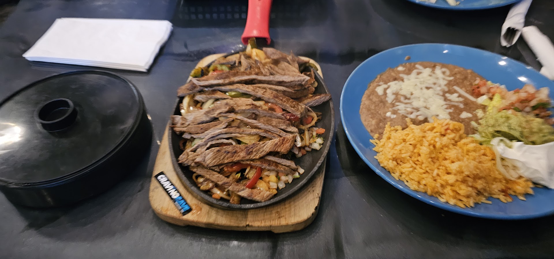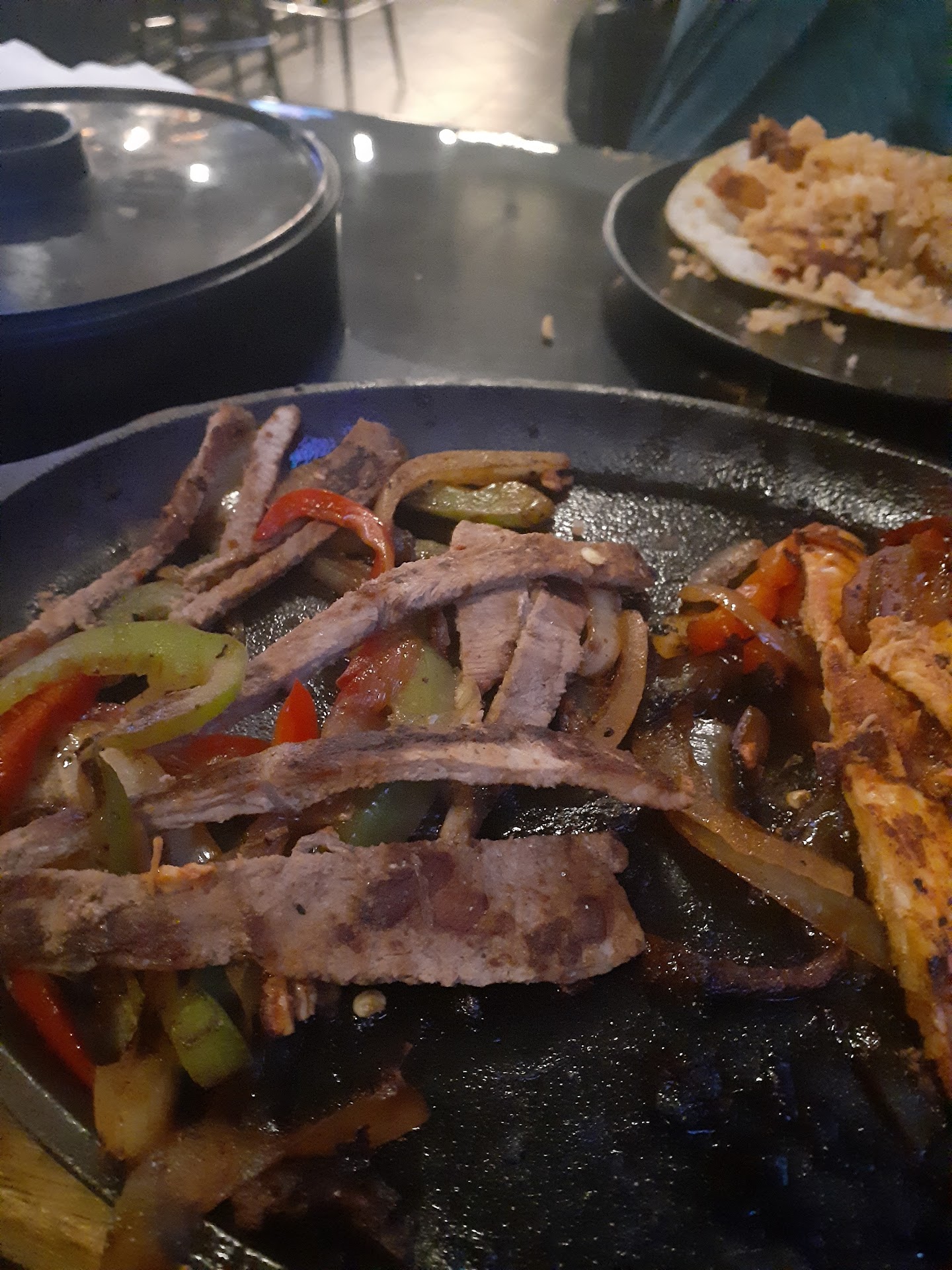 For dinner we ordered the "steak" and chicken fajitas to share, which arrived 40 minutes later. They had the audacity to try to pass off this grey, luke warm, dried out unseasoned sandwich meat as steak. See photo. Chicken at least looked like chicken but flavorless as well. Tried to heap sour cream and guac on it just for a semblance of moisture. If i could give negative stars for the food quality, i would.