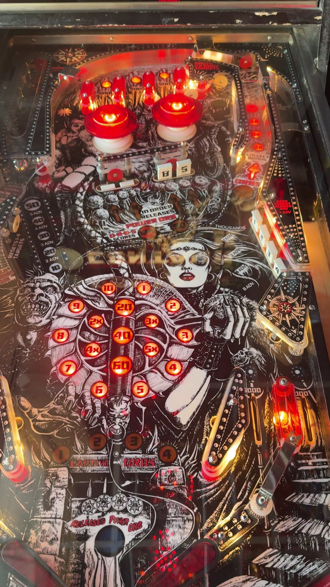 The Queen and I rolled into Deep Cuts last night, and let me tell you—this place is a time warp straight to the glory days of tube TVs, killer pinball action, and cassette tapes! From the moment we walked in, it was like stepping onto the set of a vintage arcade flick, complete with mirrored ceilings, glowing neon, and the sweet, sweet sound of silver balls ricocheting through machines.