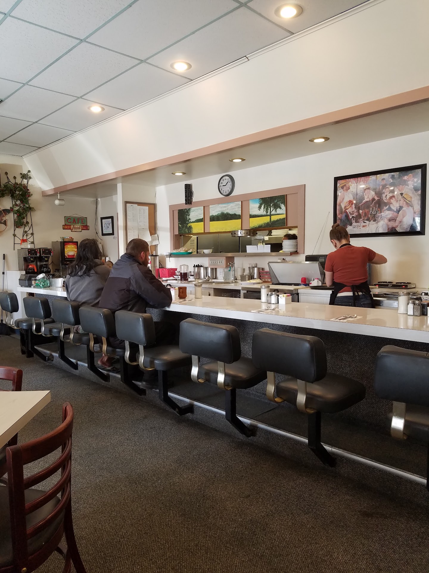 Dolly Varden resturant is a small town cafe serving american food. I've been going there since 2003 and continue to go because the food is always consistent. For 9 dollars, I get eggs, hash browns, pancakes, 4 strips of bacon and coffee. The service is excellent and I always feel welcome. Jean welcomes most of the patrons and is a great conversationalist.