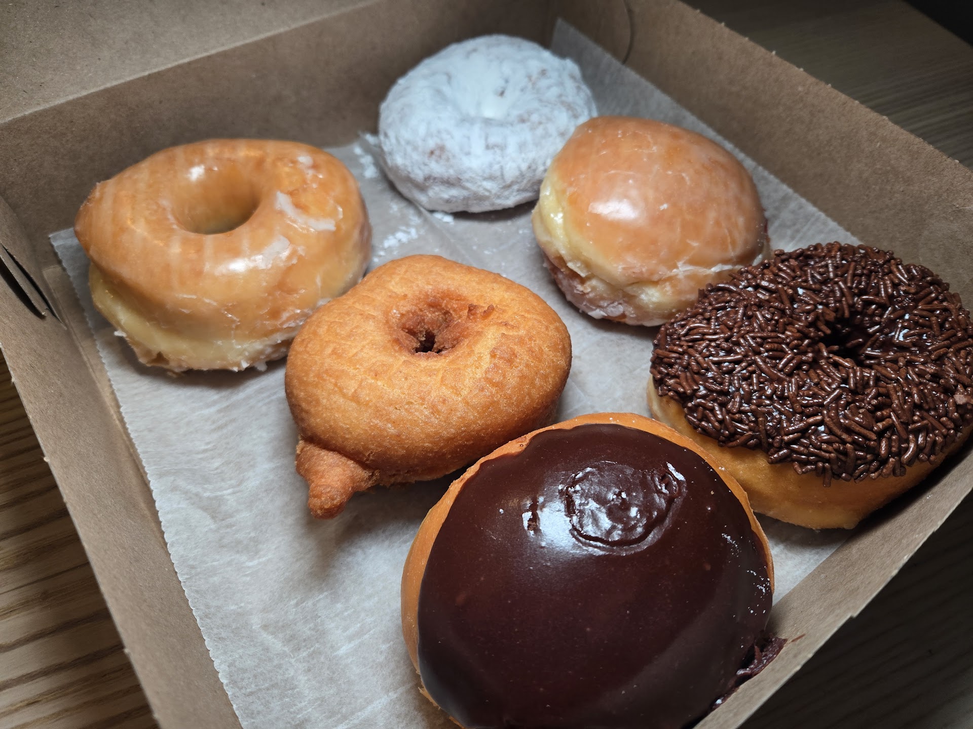Their regular donuts? Solid, but about on par with other classic donut shops in the city. What really makes this place special is the old-fashioned. The first time I had their chocolate glazed old-fashioned, I was blown away by the texture—an ultra-thin, crispy outer layer giving way to a pillowy soft inside. Not too sweet, just perfect. Turns out, they take pride in keeping that signature crunch, so they glaze each donut right before putting it on display.