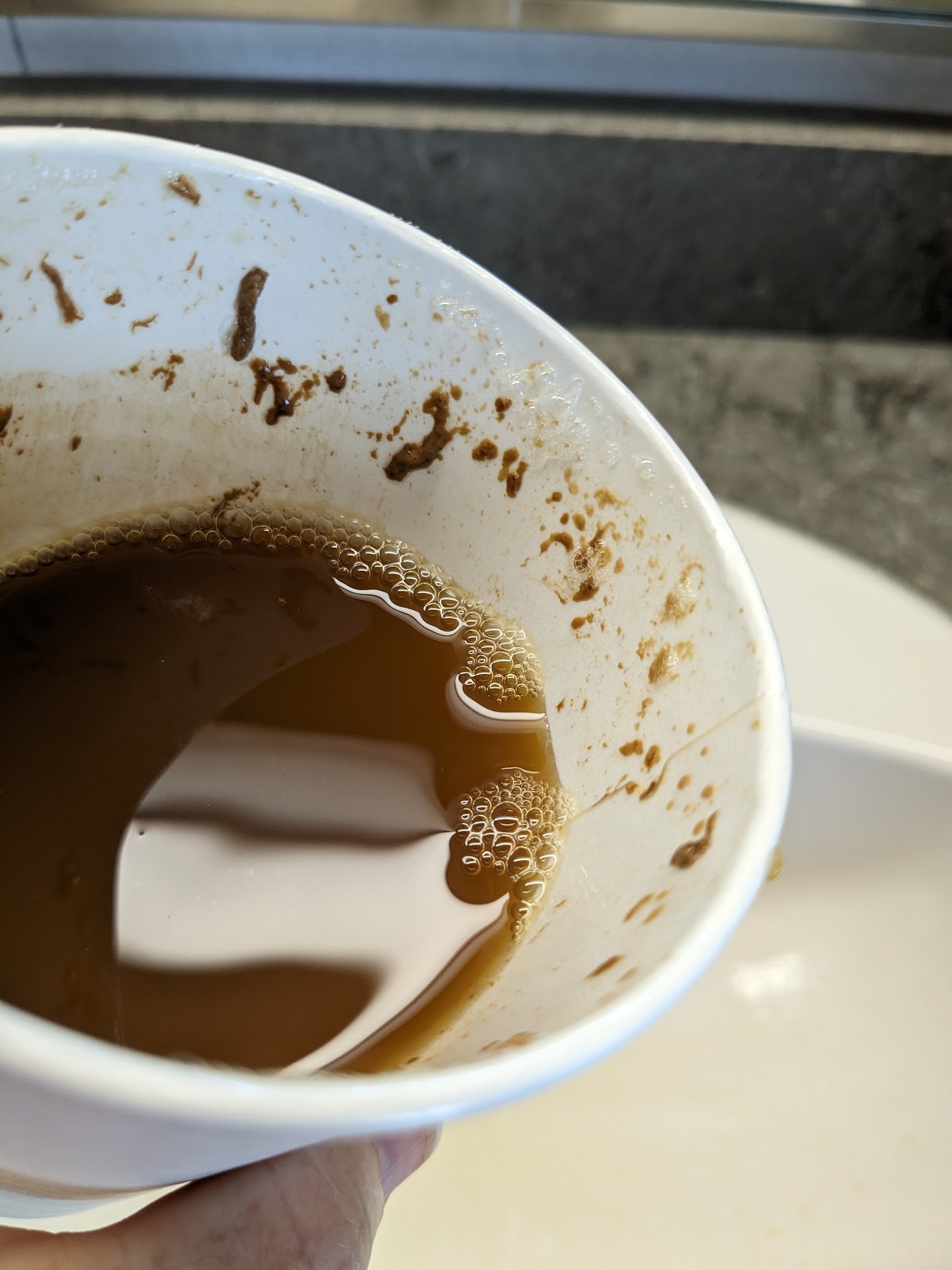 After getting the cold brew and drinking 1/3rd of it, my brother noticed that I started looking pale. Very quickly after becoming pale, I could hear my heartbeat, very weird. After about 10 mins, my mouth became salty and I had to rush to the bathroom and threw up like crazy.