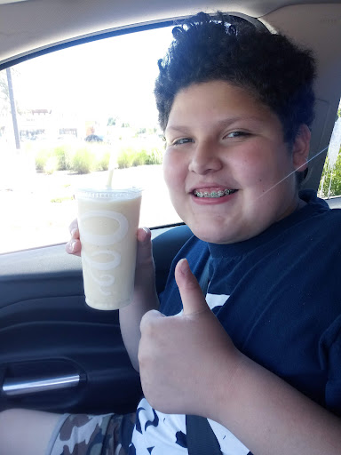 ( First encounter that started this situation. He had mentioned cups cost money because I asked for another cup) I had 2 smoothies, and there was overflow). I told him I would pay for cup for overflow. ( He was flexing...