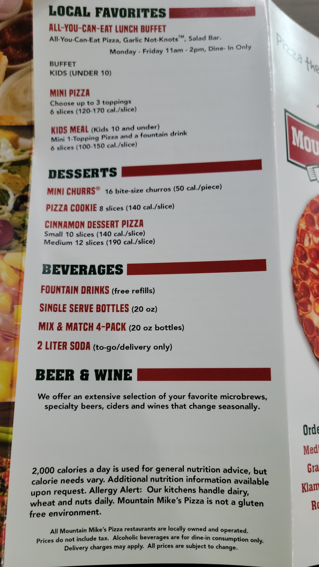 Read moreWe are so sad that we have added mountain Mikes to our list of restaurants we will not visit. We have been customers for many years, with the old location, and with the new location. We were so excited to have one closer to us. Over a month ago we ordered on door dash, and were very sad to get a gross package ranch. We called and they advised if we pick up in store we can get the regular yummy ranch. So this week on Monday we went into the store to eat. We got our pizza and went to get some ranch at salad bar. Come to find out, they now charge .75 cents per small cup of ranch, for in house orders. The cups are way smaller. You should get a certain amount with each size pizza and have to pay if you want more than that. Then there was another issue the ranch was gross, not the same. We asked and they did confirm that the ranch is not made in house anymore when the ranch policy started. So sad, this was one of our favorite places sometimes going once a week. We will not be going back. So sad to see these changes. The ranch...